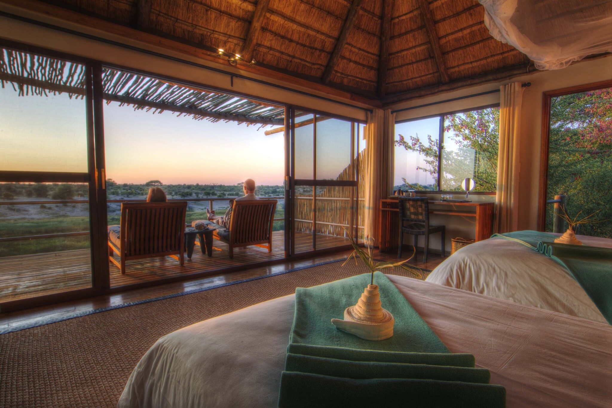 Leroo La Tau is situated on the western bank of the Boteti River, northwest of Khumaga Village and about 140 kilometres southeast of Maun. The eastern bank of the Boteti forms the boundary of the Makgadikgadi Pans National Park, which stretches away from the riverbank towards its interior of scrubland and mineral-rich grasslands. Leroo La Tau is built on cliffs over 10 metres above this changing riverbed environment, offering a raised vantage point which ensures unsurpassed views of the river and the Makgadikgadi Pans National Park to the east. The lodge offers a raised hide above the river where guestsscan enjoy the spectacular wildlife sightings that we’ve come to expect in this part of Botswana. With just 12 thatched chalets, each with en-suite bathrooms, a dining room, reading room and bar in the main lodge, expansive wooden decks and a plunge pool, guests can immerse themselves seamlessly into the ultimate wildlife experience in Botswana.Having explored the area and enjoyed a spectacular wildlife phenomenon on guided day and night game drives, guests can retire after dinner to a splendid fireplace overlooking the river.