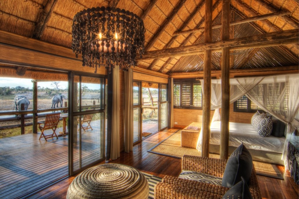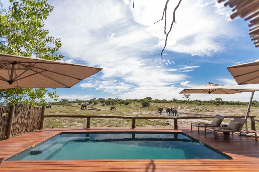 Situated on the banks of Botswana’s fabled Stolen River, Savute Safari Lodge is a traditional thatched safari lodge in a setting of singular beauty. But just as awe-inspiring is the decade old story of how the river was stolen and in an unexpected twist, how it was given back. The signature expansive glass sliding doors and viewing decks at Savute Safari Lodge were inspired by the striking panorama, and have been further complemented by the Savute Channel which now flows just 50 metres from the lodge. To ensure a private and relaxing environment, Savute Safari Lodge accommodates just 24 guests in 12 local timber and thatched chalets. The chalets have been elegantly furnished in calm neutral tones to compliment the natural environment and feature expansive private decks, a combined bedroom and lounge area plus en-suite facilities. Sink into one of the numerous comfortable leather, wood or wicker sofas in the lounge – and library – or sip a cocktail in the stylish bar, all of which are situated in a beautiful two-storey thatch and timber main building. Savute Safari Lodge boasts a shaded viewing deck, al fresco dining area and swimming pool with spectacular pool loungers – ideal for watching the varied wildlife; and the resident elephants – as they make their way to the Savute Channel to drink, bathe and play Savute boasts a viewing deck, an al fresco dining area and swimming pool; which is ideal for watching game at the waterhole.Open 4×4 game drives are conducted in the Savute area, including the famous Savute Marsh, and the ancient San rock paintings at Gubatsa Hills, add magic to a delightful African safari.
