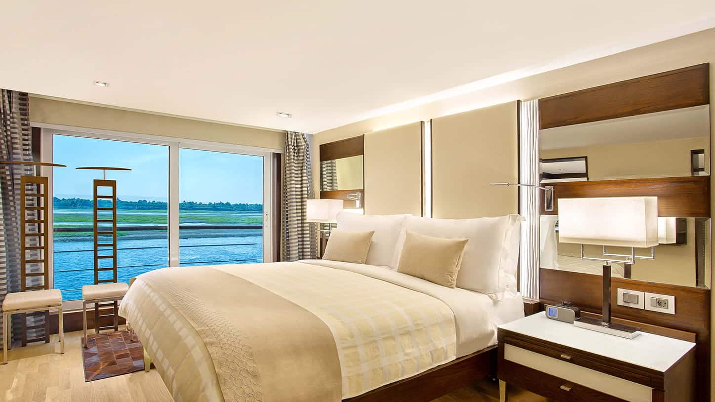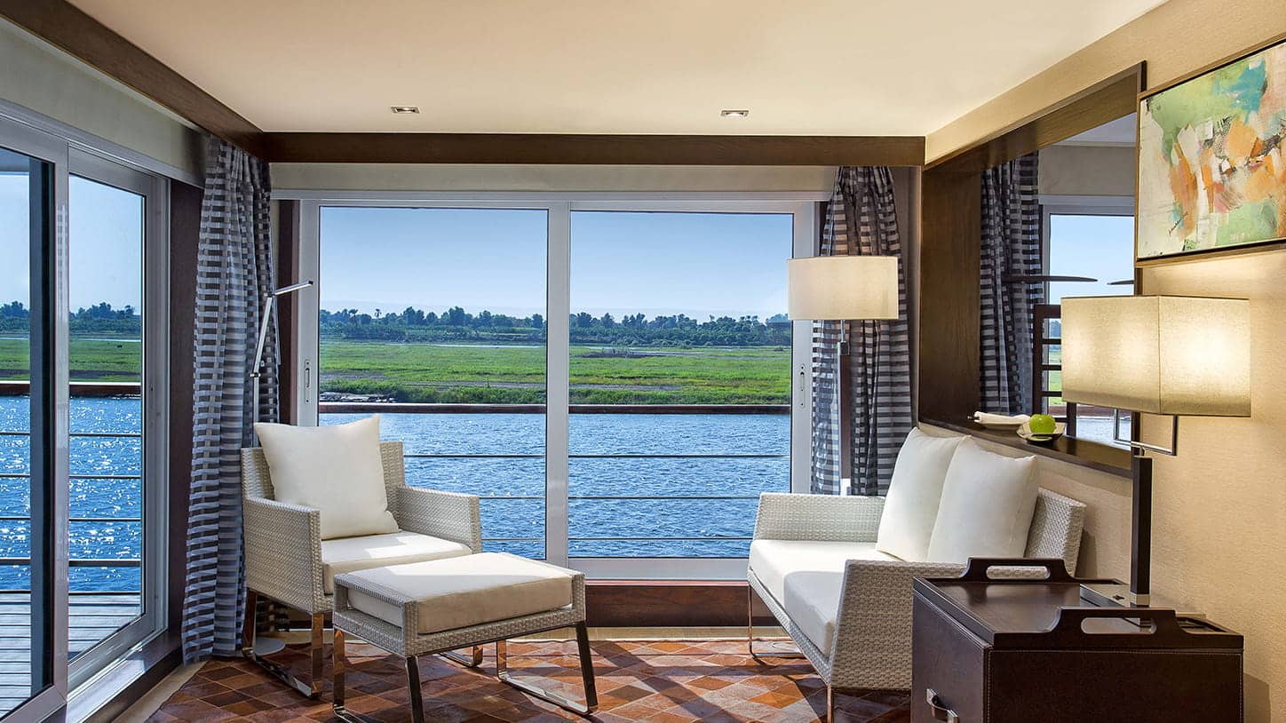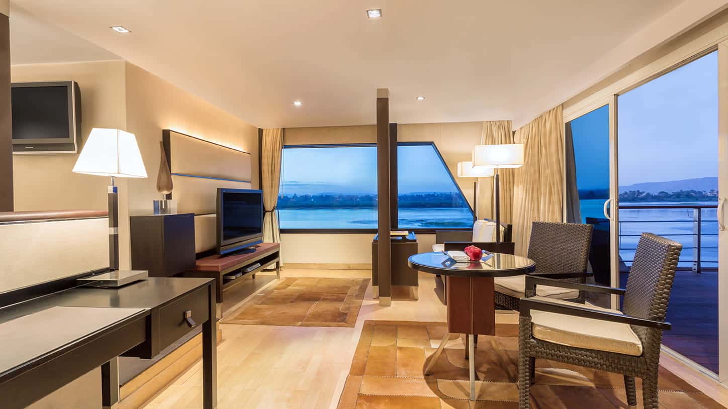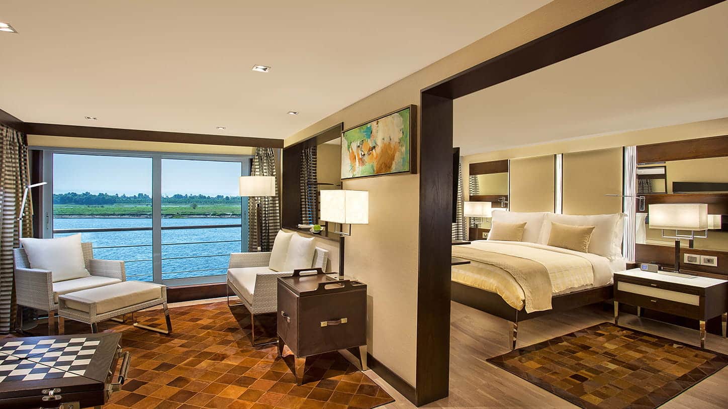 The River Nile, the world’s longest river, offers a journey through Egypt’s ancient history, with its banks lined by awe-inspiring temples and monuments. To the ancient Egyptians, the eastern bank symbolised birth and growth, while the western bank represented death and the afterlife. Oberoi Philae features a light and modern design, with 18 cabins and 4 spacious suites adorned in neutral tones, rattan furnishings, and floor-to-ceiling windows that provide unobstructed views of the Nile’s scenery. Guests can savour freshly prepared cuisine ranging from Western and Indian to Asian and Middle Eastern dishes, served in the elegant indoor restaurant, the lounge, or the poolside dining area. The cruiser’s luxurious amenities include a tranquil spa, an on-site gym, a cozy cigar lounge, and even a private cinema for an indulgent afternoon.