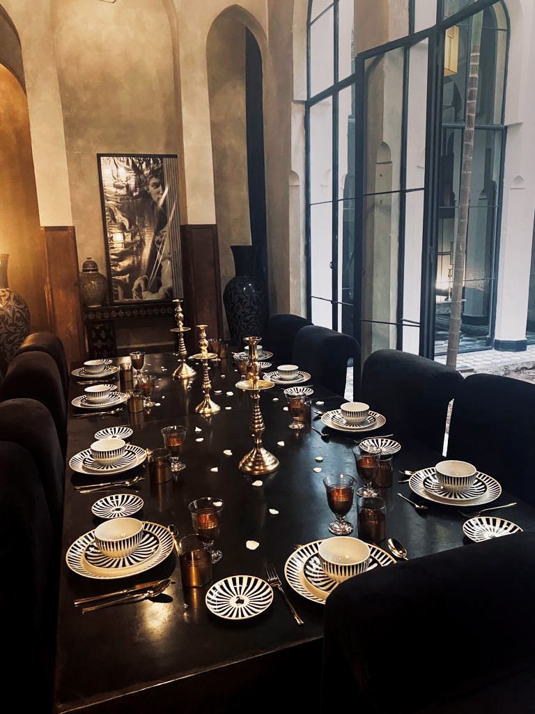 Dar Darma is an 18th century mansion rising in the ancient Moqf district, at the very core of the Marrakech Medina and close to famous Jemaa El-Fna square, the city’s beating heart, a few steps away from the Marrakech Museum and the Medersa Ben Youssef Koranic School. Dar Darma offers complete privacy and very elegant atmosphere. The mansion was fully restored with its authentic interior carefully preserved: hand-painted wood vaults, precious plaster casts and ancient gates. Six superbly furnished, finely decorated penthouses offer halls with fireplaces, one or two bedrooms and private bathrooms. There are large hallways and open patios, a traditional hammam and terraces with shady lounges. For the heat of the day there’s a swimming pool anddguests enjoy a breathtaking view stretching up to the Koutoubia, the Dar El Bacha Palace and the Atlas mountains. Thanks to a custom-made, 24/7 service provided by the staff, Dar Darma is an ideal place for demanding travellers searching for unique style and high quality service.Overlooking the green patio, thanks to refined interiors and beautiful combinations of shapes and colours, the Moroccan Lounge, the Fireplace Lounge and the Hall of Arches are ideal places to relax, read or listen to music and enjoy the delicacies of the house. Lunches and dinners are prepared by an expert cook and can be consumed in the privacy of your own suite or on the terraces.