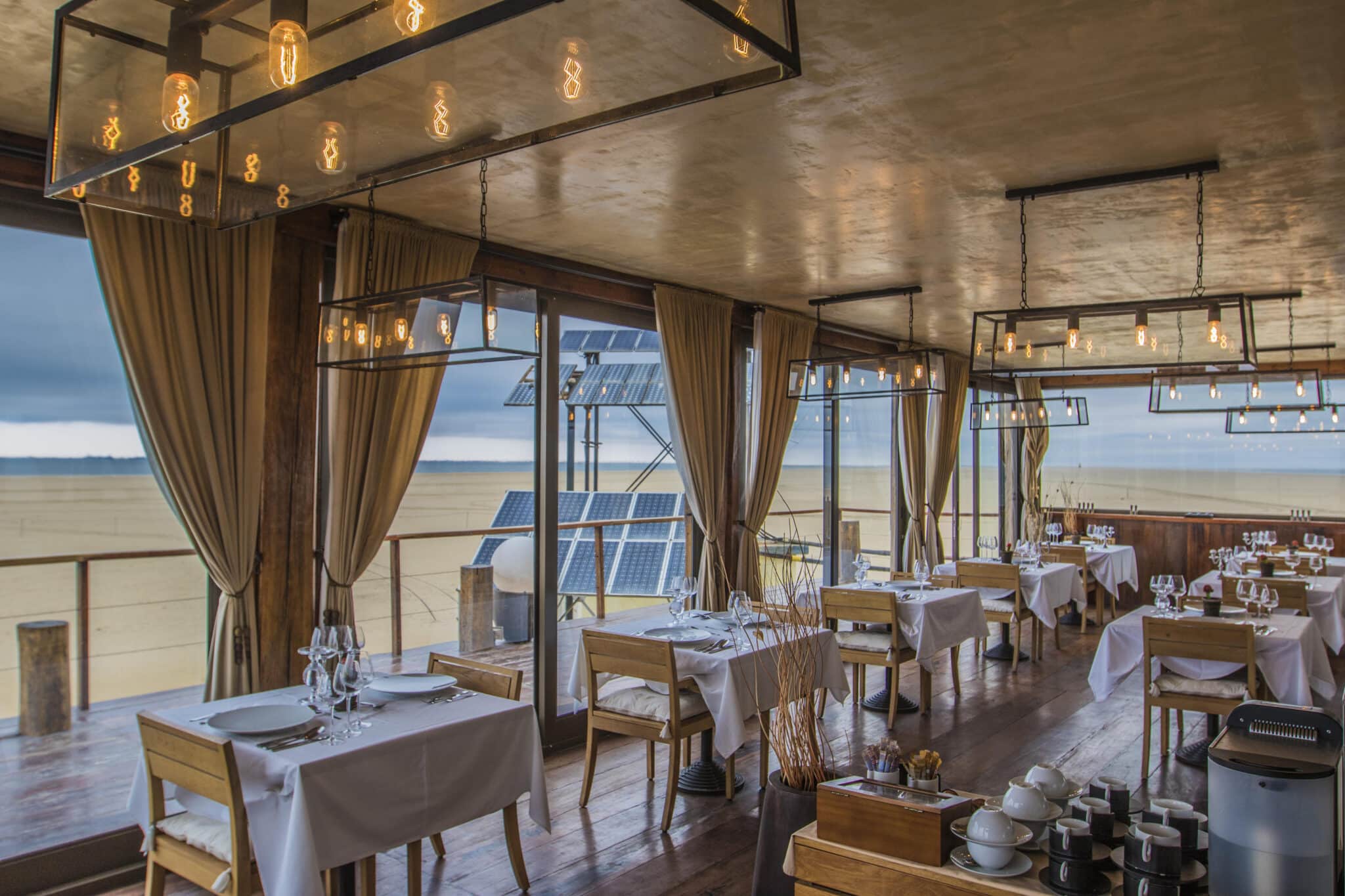 Pelican Point Lodge offers a unique holiday experience on the semi-remote Peninsula of Pelican Point, across the bay from Walvis Bay Harbour. With 10 beautifully decorated suites, you can enjoy stunning views of the ever-changing landscape. The lodge, located at the foot of the Pelican Point Lighthouse, provides one-on-one service, scrumptious dining, and complete privacy. Surrounded by the Atlantic Ocean and the Lagoon of Walvis Bay, you’ll witness breathtaking sunsets, hear the calls of jackals at night, and observe around 20,000 seals interacting with each other. The lodge offers various activities, and the Captain’s Cove suite offers 360° views for a truly regal experience. Pelican Point Lodge is an eco-fragile destination accessible via a 4×4 vehicle, ensuring an exclusive and unforgettable retreat in the heart of the Namibian Skeleton Coast.