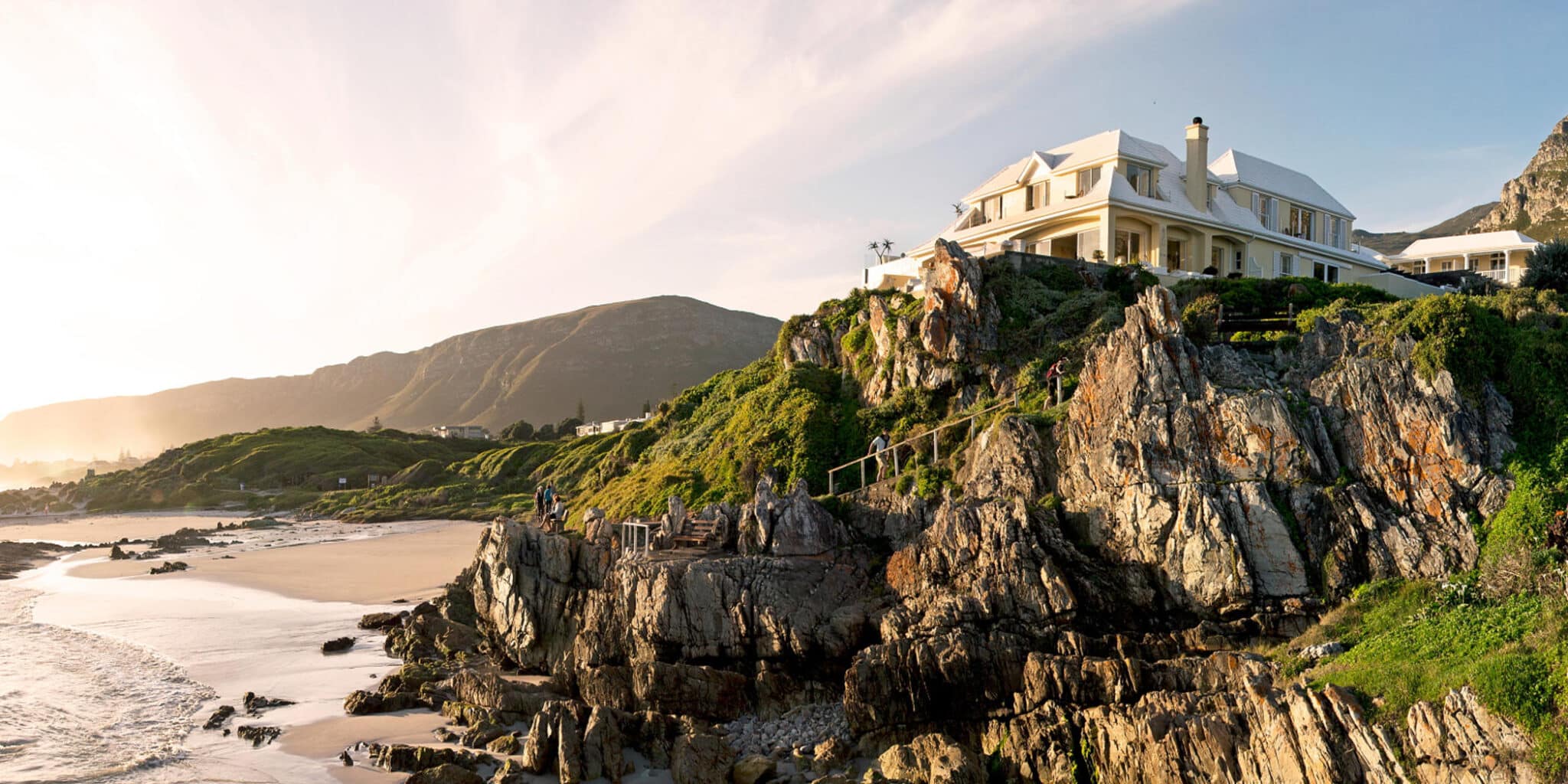 With its unbeatable cliff-top position overlooking the famous whale watching paradise of Walker Bay, Birkenhead House offers the perfect luxury Hermanus hotel accommodation for those seeking an unforgettable seaside experience. From its extraordinary viewpoint, observe surfers cutting through the waves, and for several months each year, witness Southern Right Whales breaching just metres from the shore. Incredibly, what lies within Birkenhead House is as breath-taking as what lies beyond. The hotel’s contemporary decor is an artful mix of classic beach house style and quirky luxury. What’s more, the furnishing and artwork is eclectic and arresting. While Birkenhead House is Hermanus luxury accommodation at its finest, the hotel is characterised by a laid back and easy-going atmosphere. Following a relaxed breakfast at noon, have afternoon tea on your balcony, then gaze over the ocean at sunset over a cocktail or two. Dinners are leisurely, staff is friendly and knowledgeable, and the pace is comfortable. Alternatively, cool down in the infinity pool, which runs down the centre of Birkenhead House and looks out towards the sea.