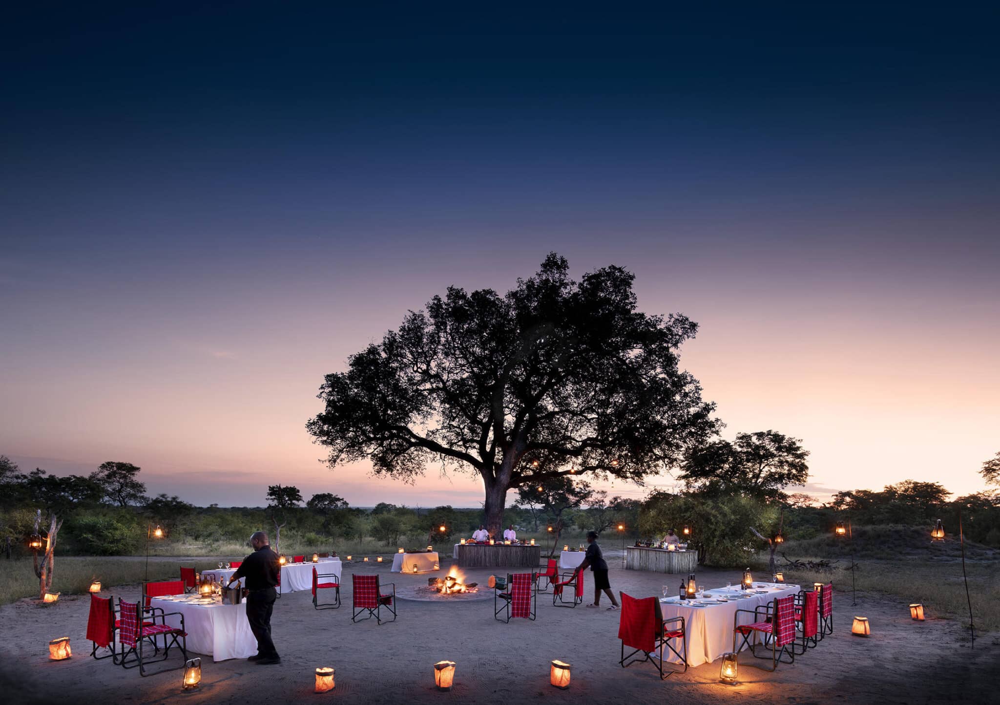 Nature is never far at Ngala Safari Lodge, with breakfast and lunch served in the shade of an enormous weeping boere bean tree.