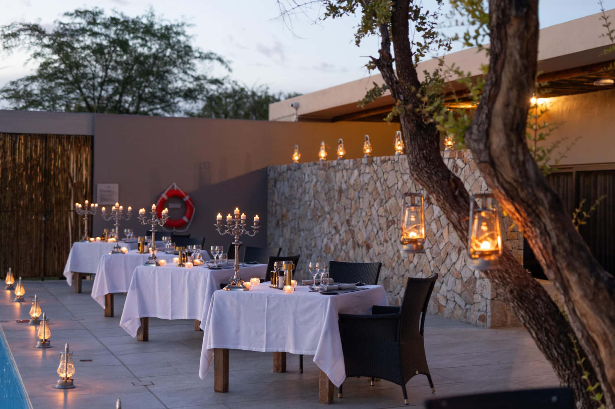Nature is never far at Ngala Safari Lodge, with breakfast and lunch served in the shade of an enormous weeping boere bean tree.