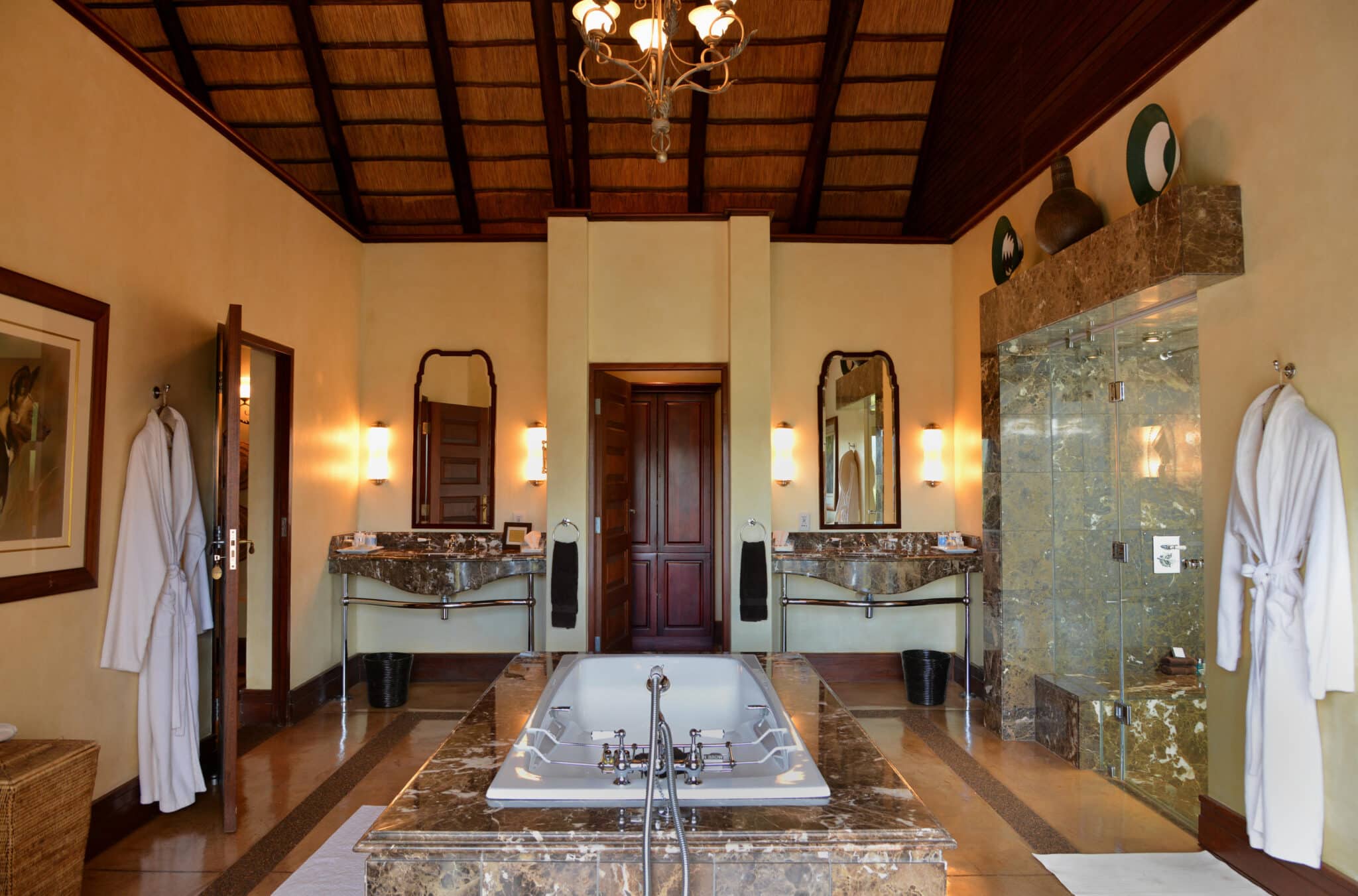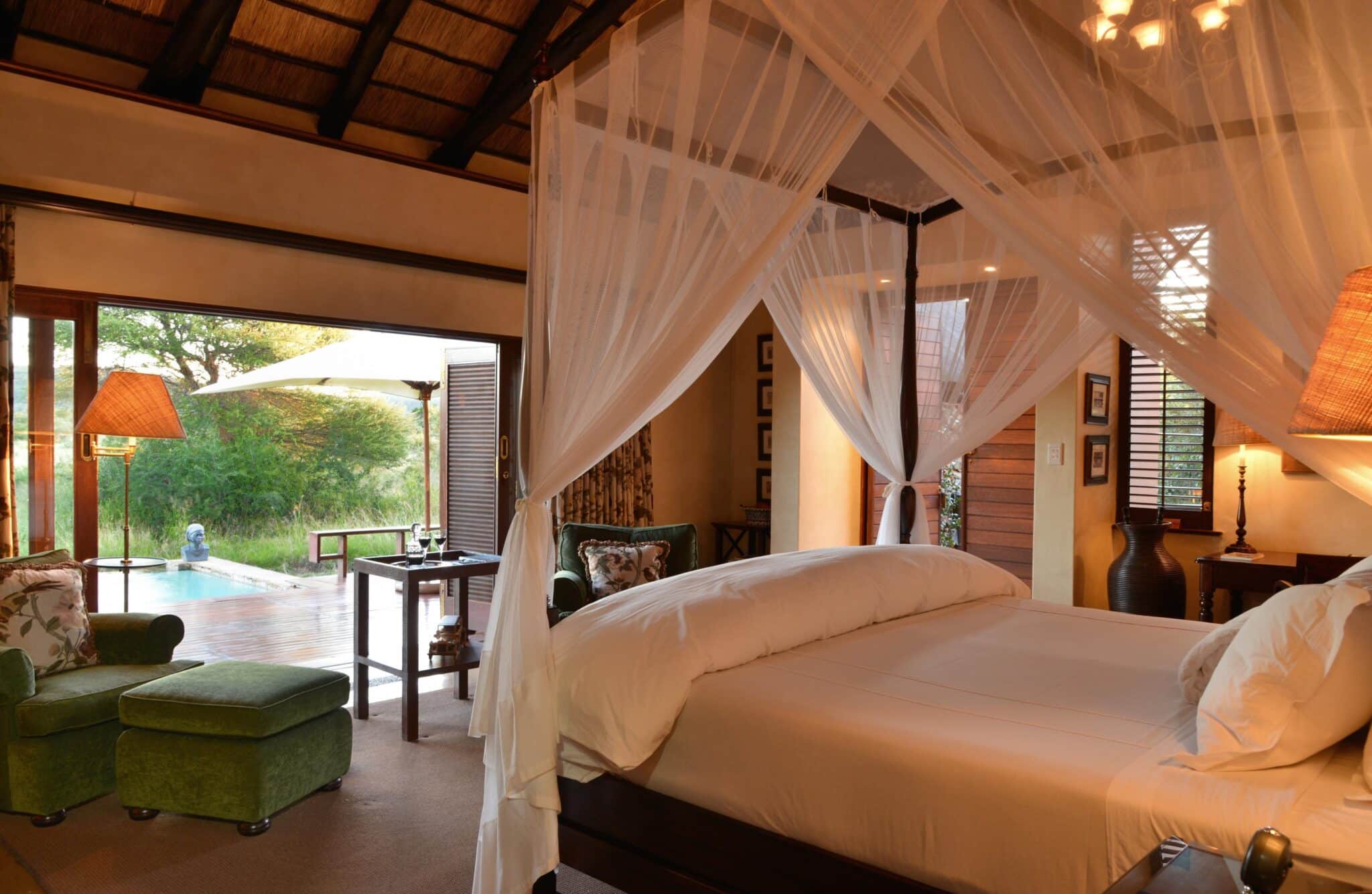 Mateya Safari Lodge is luxury accommodation at its best. Situated in the malaria free Madikwe Game Reserve this lodge oozes comfort and elegance as it melts into the untamed wild of the South African bush. Hosting a maximum of just 10 guests, Mateya Safari Lodge has five exclusive suites that are arranged around one of the Gabbro Hills with uninterrupted views of the waterhole and surrounding plains (which you can enjoy from the comfort of your private infinity pool). The suites also have large en-suite bathrooms with indoor and outdoor showers, a vast private deck area with sun loungers and are styled with beautifully unique African artwork. The boutique nature of this lodge means that there will never be more than 4 people in any game drive vehicle unless you want there to be. The small numbers of each drive mean that when you are observing the likes of the super 7 – buffalo, cheetah, elephant, lion, leopard, rhino (black and white) and wild dog – your view will be unobstructed. Mateya are also able to offer bush walks to guests over the age of 16 (although anyone over the age of 60 will need a written Doctor’s Bill of Health). Mateya Safari Lodge is named after the legend of Queen Mateya and the beautiful story stands so prominently with the lodge ethos. Crafted from materials found locally, the lodge has a majestic African feel that makes it the most memorable experience.- Mateya Safari Lodge unfortunately cannot host children under the age of nine unless the lodge is taken exclusively