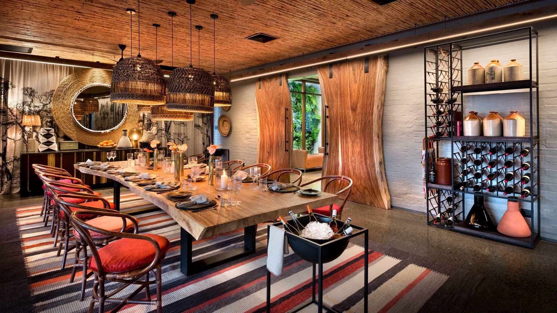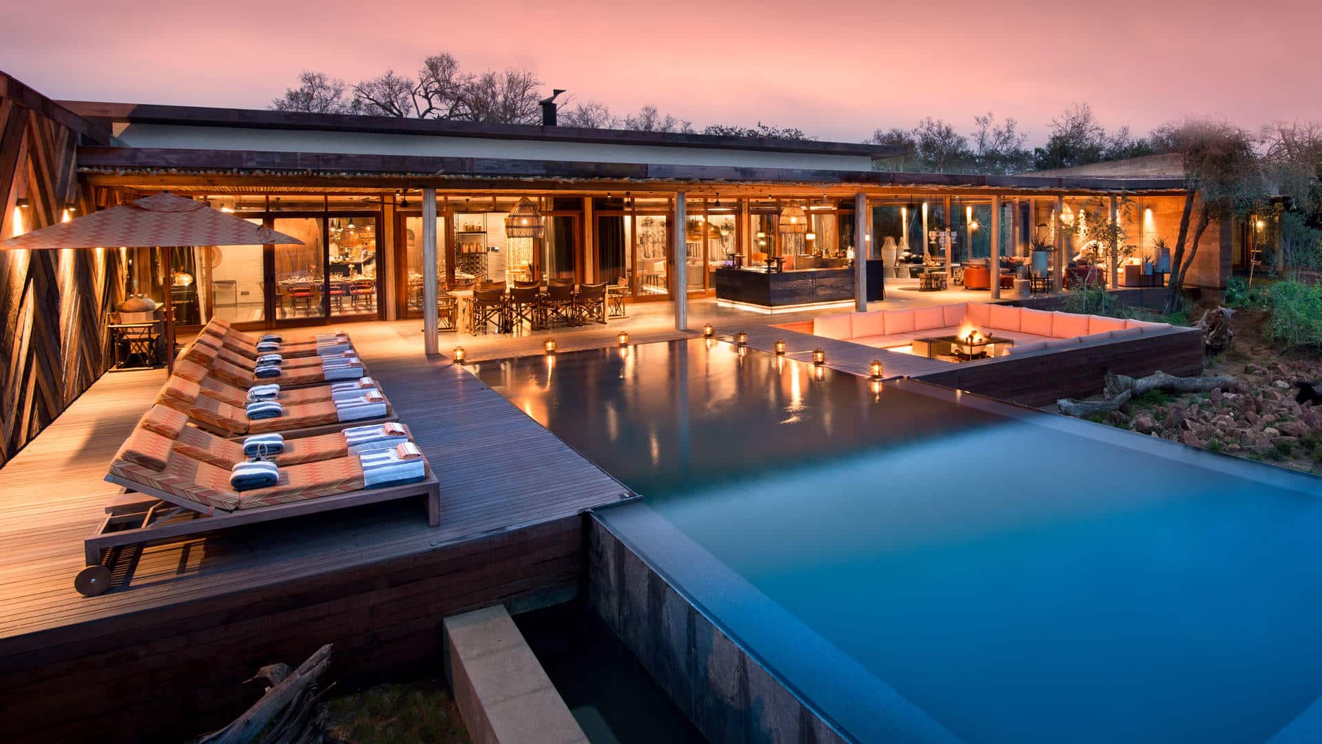Situated in the north of the reserve, &Beyond Phinda Homestead is a gracious sole-use safari villa that blends seamlessly into the surrounding trees and bush. There are four luxurious suites with large sliding windows give a sense of space and light. Beds are positioned to face the waking bush but there’s no need to jump out of bed early – with a dedicated game ranger and tracker, as well as a private game drive vehicle, you set your own game drive times!A focus on stylish comfort, coupled with genuine hospitality from your personal chef and butler, will have you feeling at ease in this private villa. An interactive kitchen awaits your instructions, whether its the simple joy of having your favourite meals prepared for you or the pure pleasure of being surprised at meal time. Enjoy meals shared with special people around a spacious table or savour a delectable picnic on an extended game drive. While away a quiet afternoon drinking in the views from the open viewing decks or give in to the seduction of plump cushions around the sparkling swimming pool. If you’re feeling more active, enjoy a workout in a gym that boasts incredible view of the wilderness outside. As night closes in, admire the glorious colours of an African sunset steal over the skies as the warm light of dozens of lanterns creates an intimate dining space in the private outdoor boma.