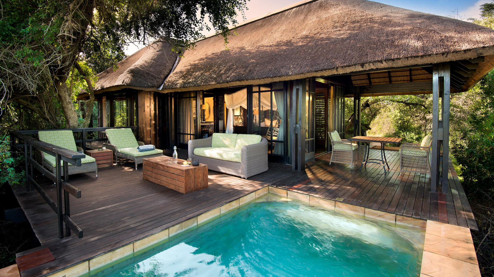 Elegant and serene, the gracious spaces of &Beyond Phinda Vlei Lodge are designed for quiet contemplation of the African bush. With each suites deck opening up onto a dazzling view of the clearing beyond, combine your game viewing with a refreshing dip in your private plunge pool, but be prepared to share it with a thirsty elephant or impala! Each suite boasts not only a private sitting area and en-suite bathroom, but also a dressing room and game viewing deck, so you may not ever want to leave, even for meals. Not that youuwill have to – private dining in your suite can be arranged, as can more social meals on the dining deck or even on the edge of the Vlei. On clear, cold winter nights keep the chill at bay in front of a roaring fire in the sitting room before retiring to the comfort of a warm bed. With each suite carefully positioned for a prime view of the animals coming out to drink and panoramic vistas from even your shower or bathtub, the game viewing never stops!