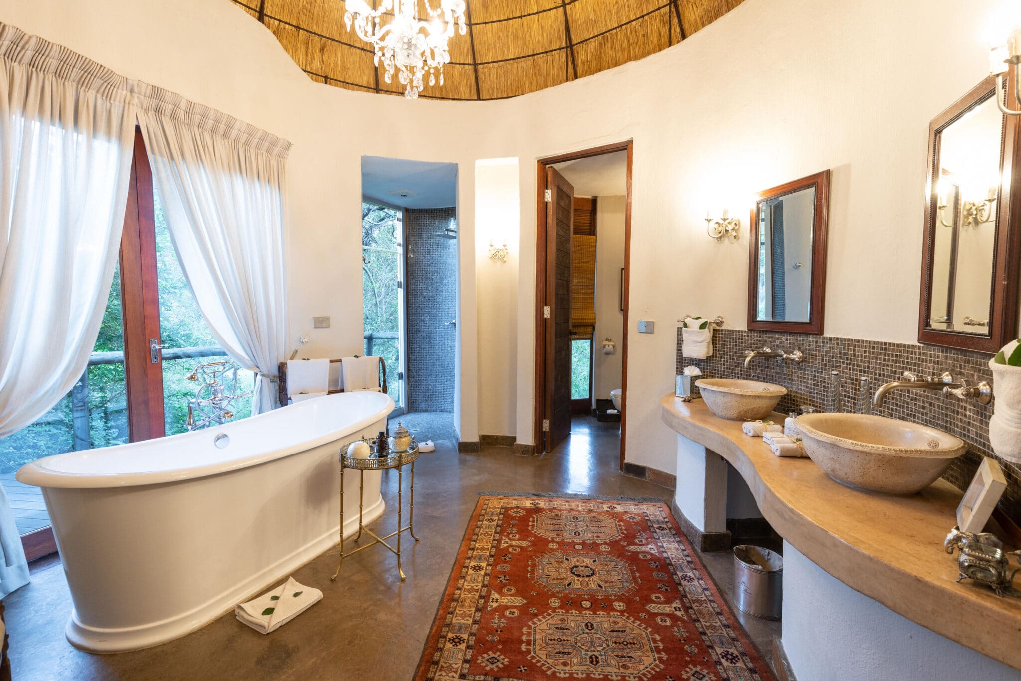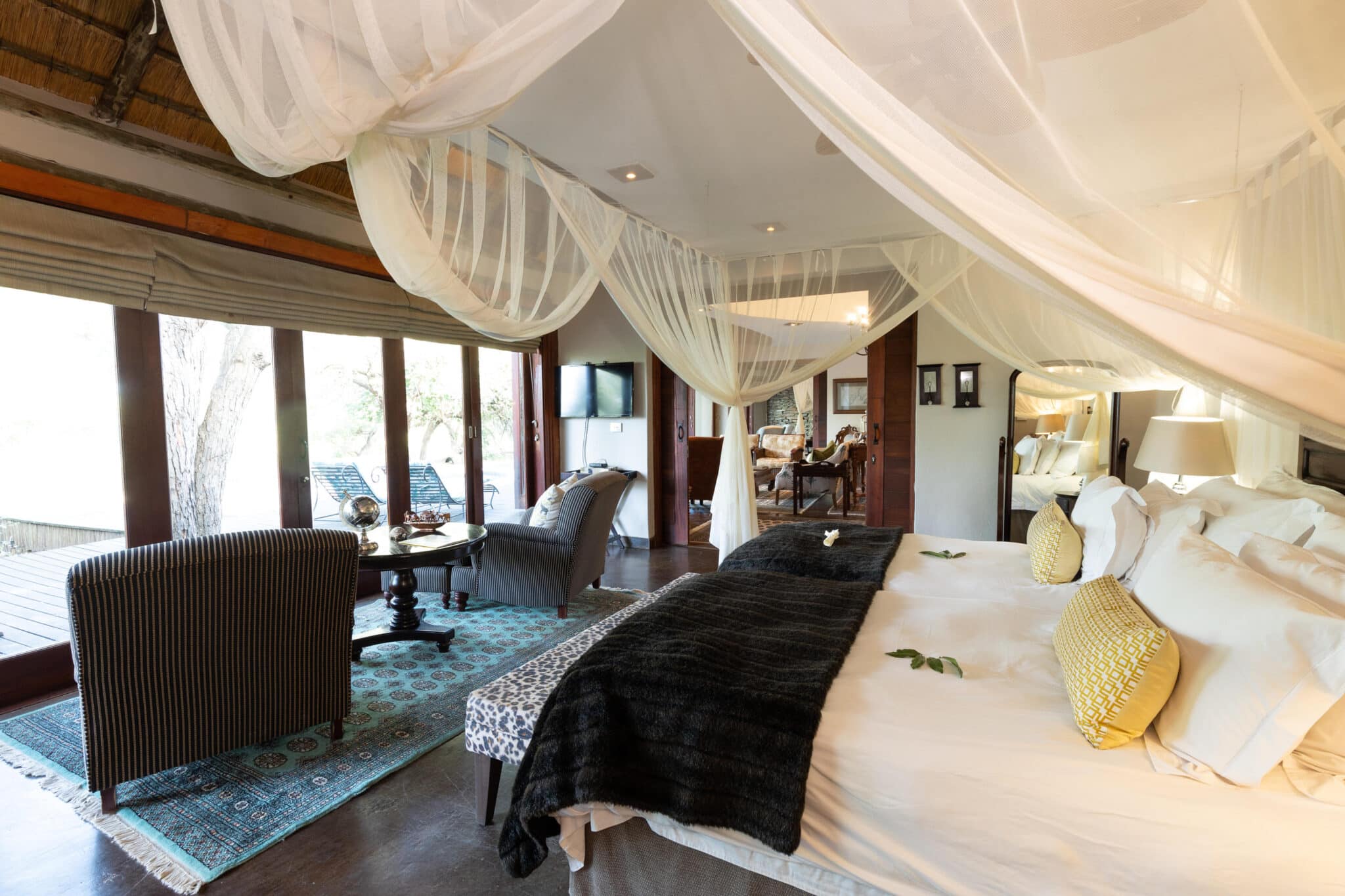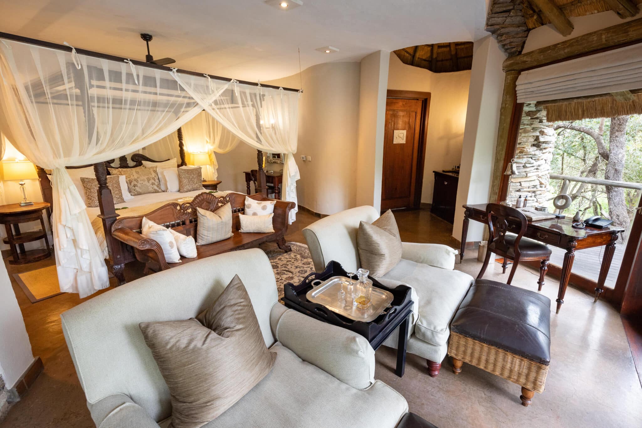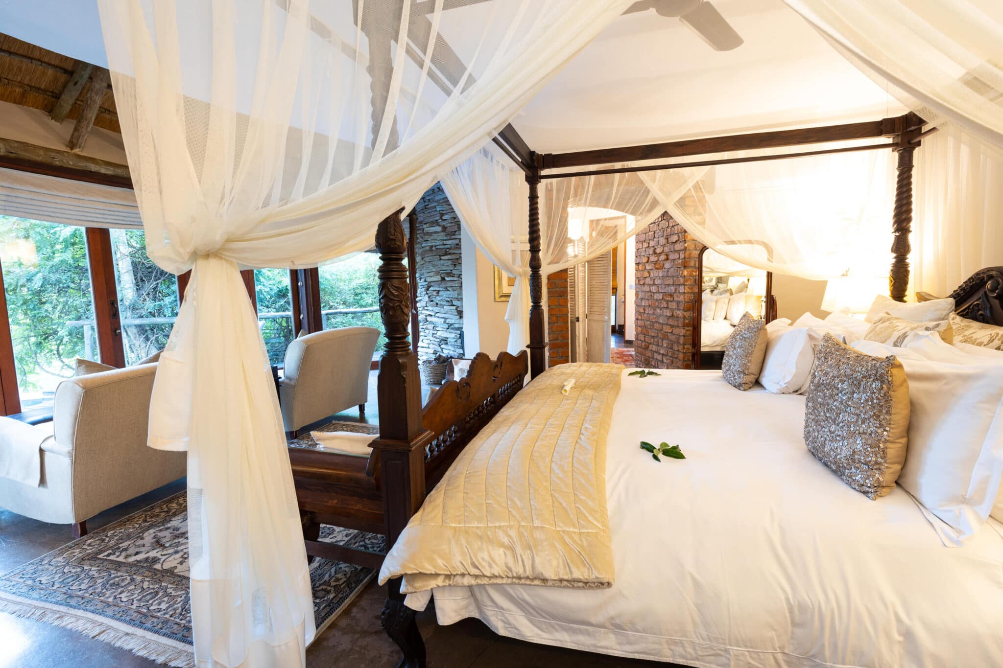 The reserve is unique for its very low vehicle density, and as a result offers the true exclusive safari experience. Tintswalo Safari Lodge is situated along a seasonal river bed among an ancient sycamore tree grove in Mpumalanga. The exquisitely appointed main lodge overlooks a waterhole frequented by a large herd of elephant and other big game. The explorer suites are all linked to the main lodge by raised wooden walkways. The six spacious and sumptuous suites all have private decks and a plunge pool, and overlook a waterhole frequented by variations of wildlife. Each suite is also authentically decorated to recall the pioneering times of the nineteenth century African explorers they are named for. The Presidential Suite is especially suited for a family, orr guests who prefer the ultimate exclusive safari and a flexible itinerary.There are two air-conditioned suites which are connected by a spacious lounge, dining, and open plan kitchen area. The individual indoor/outdoor showers lead off from the spacious bathrooms that open out onto the deck with its large private plunge pool.The Presidential Suite is predominantly booked exclusively, where guests enjoy their own private safari vehicle, private guide and tracker, private chef, and butler.The suite also has DSTV and a PlayStation to ensure entertainment for every member of a guest’s party, at any time. For safety and convenience, the Presidential Suite is connected to the main Safari Lodge by a raised walkway.