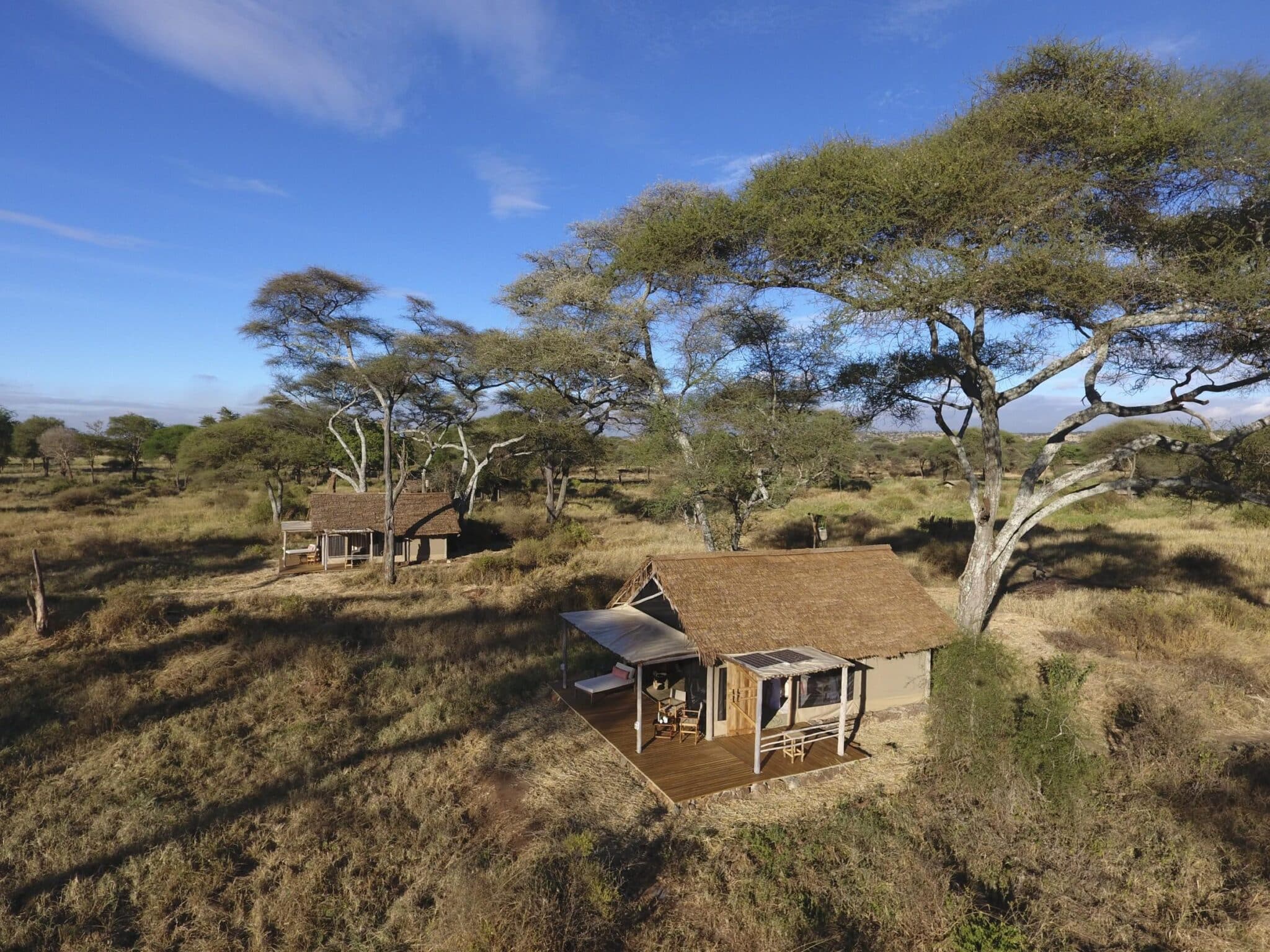 Kuro Tarangire is set amid a grove of Acacia and Kigelia trees on the banks of the Tarangire River – often a dry, sandy course snaking through this quiet area of the park. The area sees the rhythmic movement of wildlife as it traverses the park from the hills in the west to the swamps on the eastern side, and between the north and the south along the river line. Conscious of wanting to experience this place in a way that harmonises with the natural tempo, Kuro Tarangire is an eco-friendly camp, whilst still being stylish and comfortable. There are six light safari tents complete with comfortable beds, en-suite bucket shower and flushing eco-toilet. The family tent has two en-suite bedrooms and an adjoining sitting area. They rest amongst the trees with views over the African bush. All guests gather to share meals and relax under the cool grass thatch of the open-sided lounge and dining area which is furnished with hides and canvas, brought to life with a touch of colourful and tactile textiles.