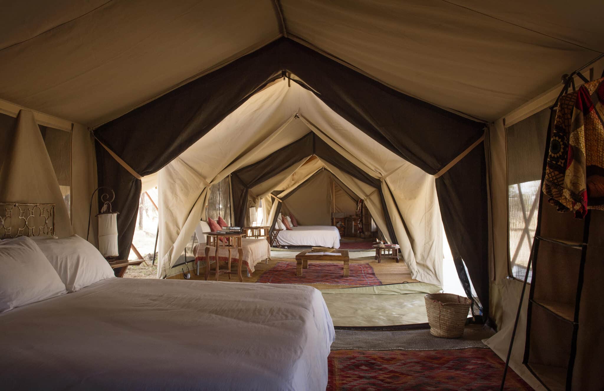 Decorated in classic Safari style with large beds and opulent rugs, the six lavish Meru styled tents are deeply romantic.