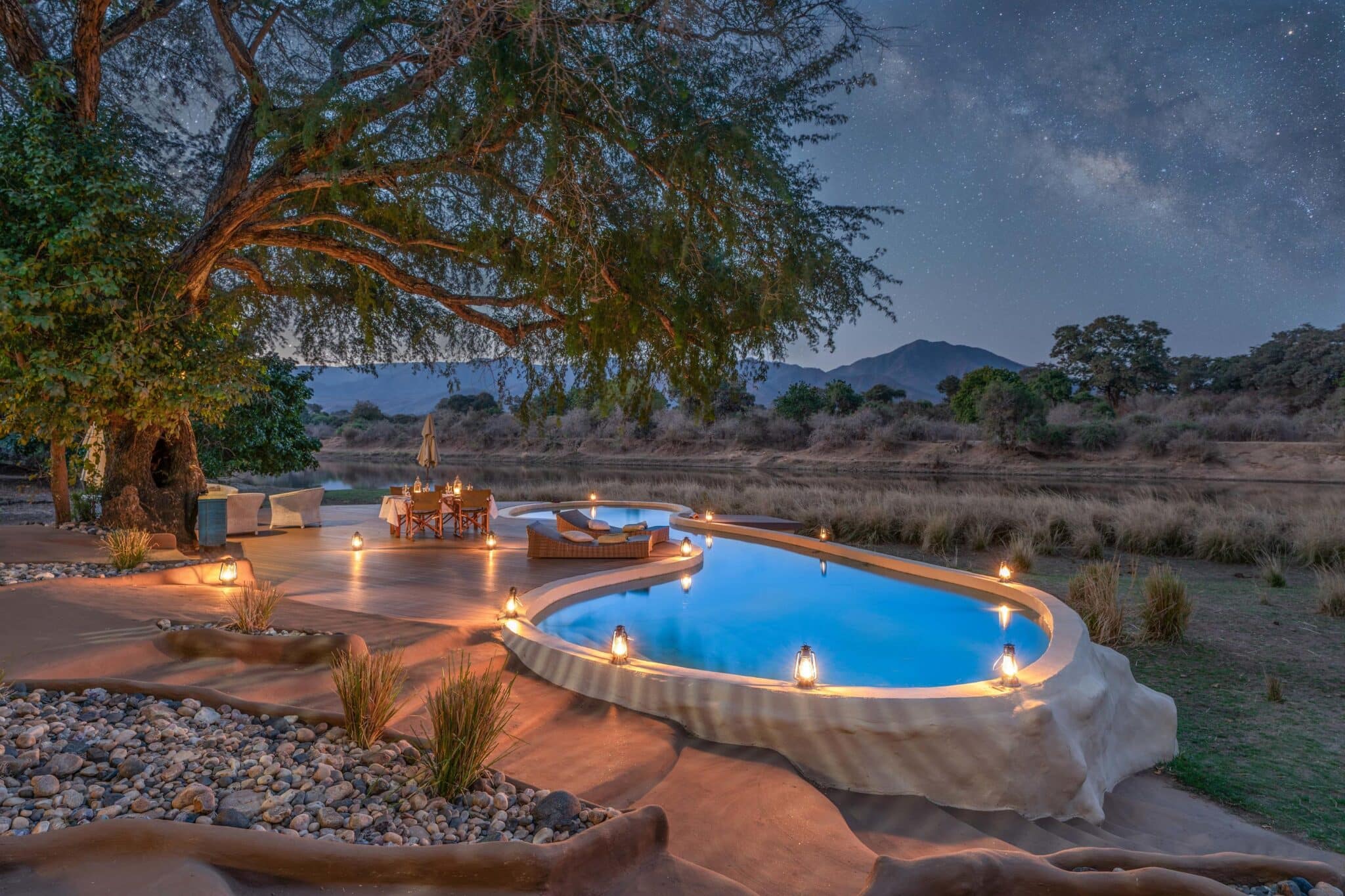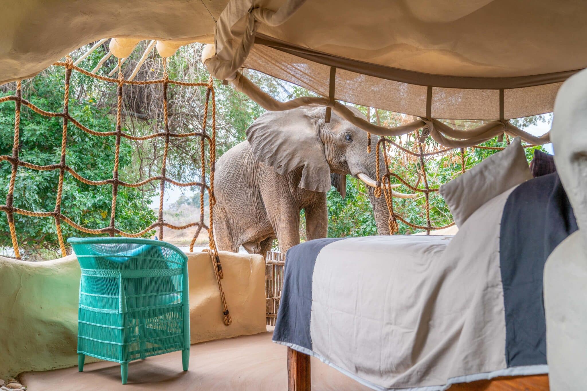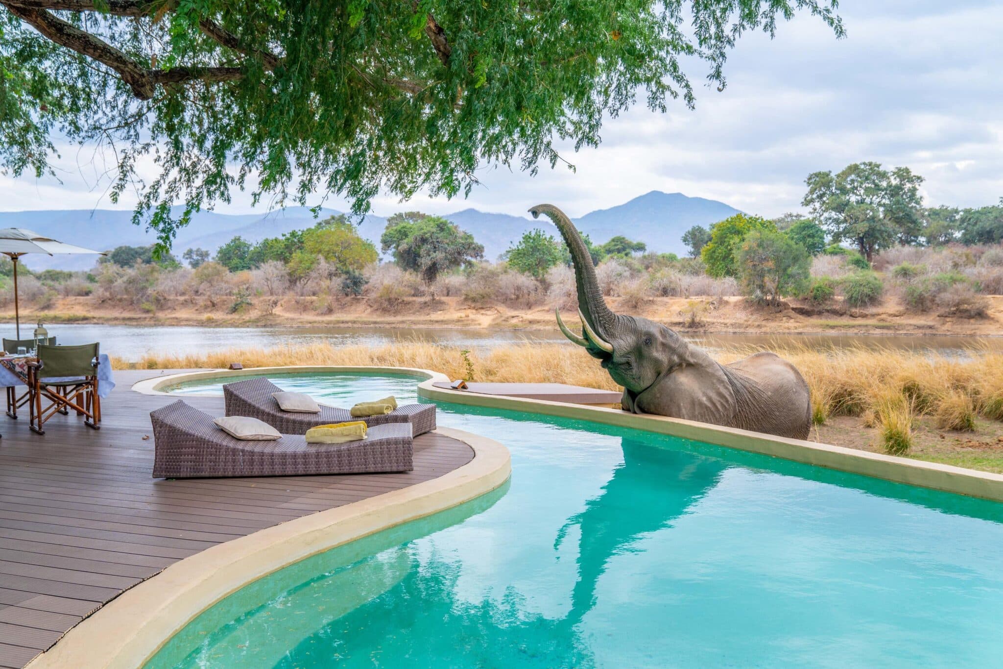 Chongwe River Camp is nestled under a complete canopy of huge winter thorn acacias, in an area where elephants are more numerous than people –Â there are no fences and the animals have complete right of way.