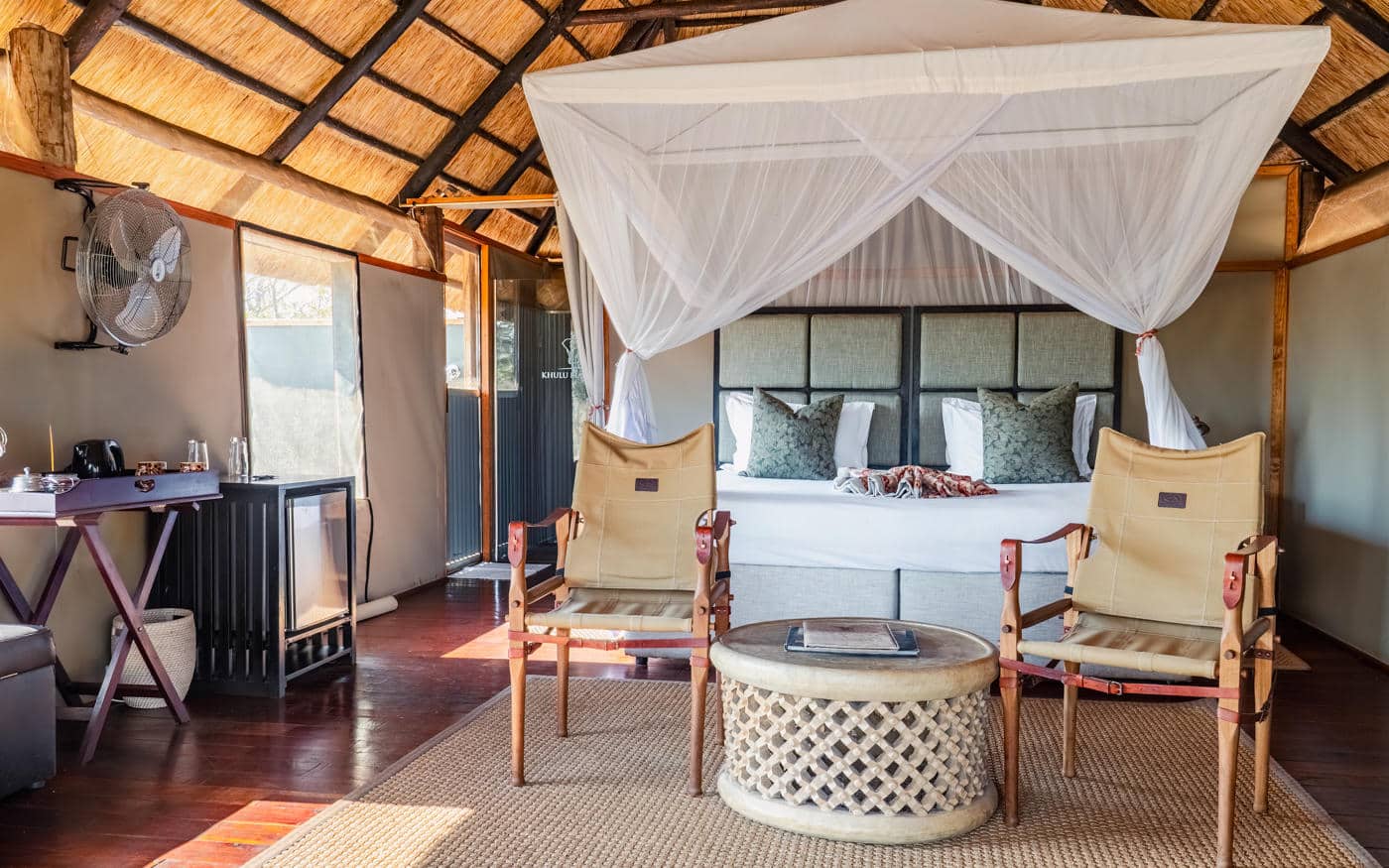 The spacious luxury safari tents of Victoria Falls River Lodge are nestled on the banks of the mighty Zambezi, with an open plan design that has been positioned just back from the river – in view of the elephants’ natural evening route.