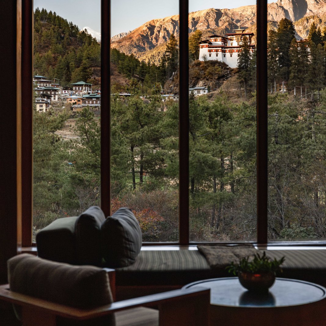 Perched at 2,250 metres, Amankora Paro is tucked away amongst the pine trees on the edge of a village above Paro town and offers access to the monasteries, museums and temples of the region, including the renowned Tiger’s Nest. From shopping for jewellery in the town, taking in the views of the snow-capped Jhomolhari mountain, or joining the lighting of 108 butter lamps at Kyichu Lhakhang, the hotel offers a chance to both unwind and learn more about the culture and heritage of Bhutan.With 24 suites, it’s the largest of the Amankora properties but retains the impeccable service and refined attention to detail that makes them so special. The spacious, wood-clad suites are sleek and pared back, with bukhari wood-burning stoves, inviting window seats and terrazzo-tiled bathtubs. The simple restaurant lets the view do the talking, while fresh, local ingredients are transformed into beautifully-presented, delicious dishes. The spa is a haven of care after a day of hiking, with a traditional hot stone bath, glass-walled yoga studio, sauna and steam room.