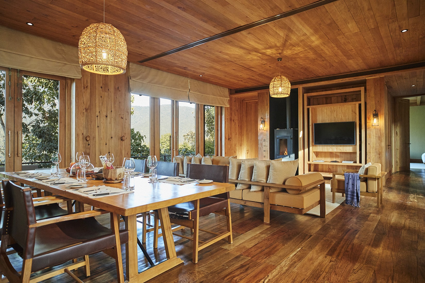 • Its cantilevered lounge and traditional Bhutanese design have earned it the nickname, the Flying Farmhouse