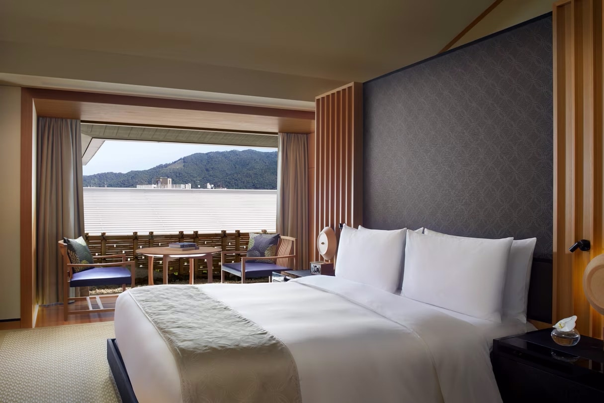 With the Kamogawa River as a neighbour and the Higashiyama mountains in the background, the Ritz Carlton Kyoto enjoys a location that’s as scenic as it is convenient. Spend a day exploring the nearby shopping district of Gion, the Nishiki Market, and Nanzenji temple complex, before heading to the spa, 20m indoor pool, steam room, and dry sauna to unwind. Dining is equally enticing, from Michelin-starred Japanese dishes to elegant Italian cuisine and sweet treats at Pierre Hermé.The 134 rooms combine traditional motifs with contemporary Japanese design, 600-count linens and oversized baths for a welcoming retreat, while large windows frame the view of the city, courtyard, garden, river or mountains. From checking-in over a cup of traditional tea to the modern Japanese art displayed throughout, it offers a comfortable stay that honours the heritage of the country in the food, experiences, design and service.