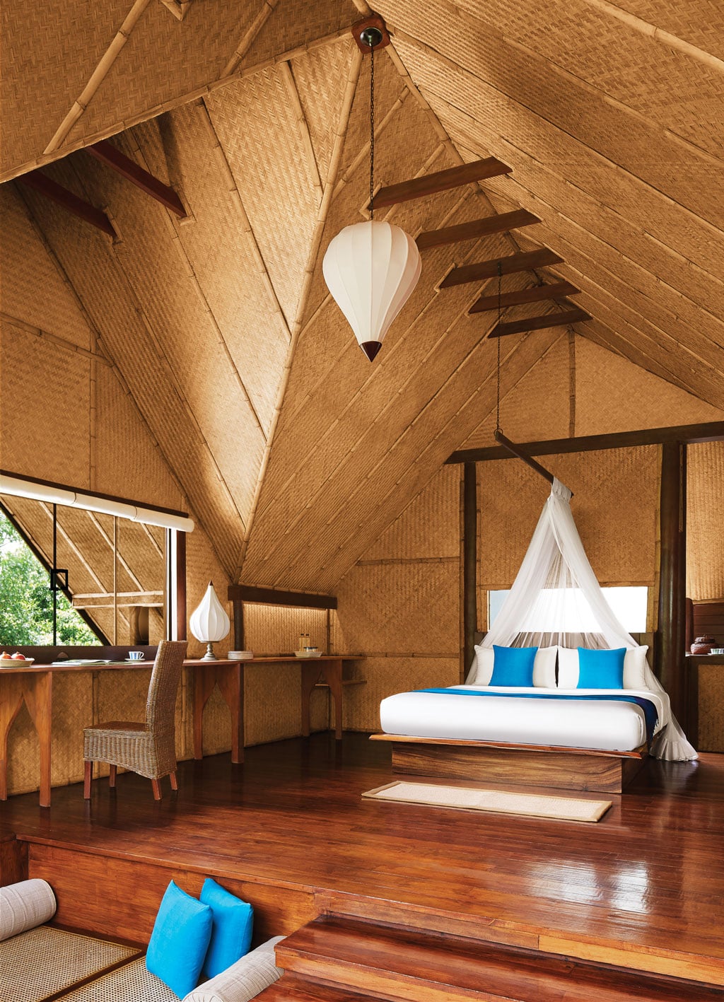 Set in a wonderland of wildlife-rich wetlands and connected by scenic walkways through the paddyfields and marshes, Vil Uyana is as beautiful as it is well-located. An ideal base from which to explore the staggering historic sights of the Cultural Triangle, as well as the natural parks of the area, it also creates the conditions for a tranquil escape. Though only transformed in 2004 into the 26-acre nature reserve it is today, the lakes, reed beds and bamboo forests could have been there for centuries. When not exploring the historic gems of the region, it offers a chance to spot over 140 bird species, langur monkeys, bulb-eyed grey slender loris, crimson rose butterfly and brahminy kite.The 36 rooms continue this connection with the natural world, using sustainable local materials, including rattan, woven reeds and wood, while modern amenities such as air-conditioning, TVs, minibars and luxurious bathtubs add home comforts. Spread throughout the garden, marsh, paddy, water and forest, the standalone rooms each have a balcony or terrace while a number also boast a private plunge pool. Three restaurant and bar options, as well as a number of signature private dining experiences, make the most of the incredible wild landscapes to serve Asian, Sri Lankan and Western dishes with a view.