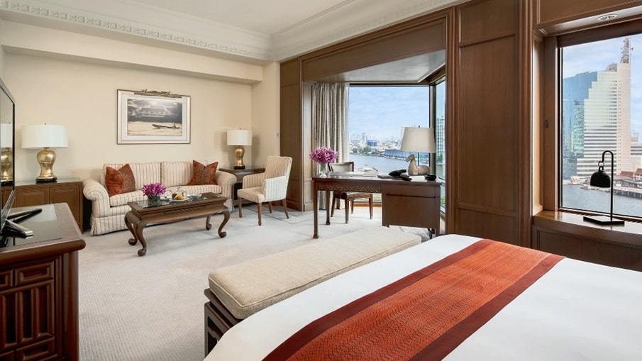 Towering over the Chao Phraya River, The Peninsular is just a short boat ride away from the city’s main historic sites, including the Royal Palace, but offers a more tranquil setting for those looking to combine the buzz of the city with a relaxing escape. One of Bangkok’s most sophisticated and grand hotels, the property expertly blends a timeless style with comfort; think spacious, wood-panelled rooms, crisp white linens, luxury Thai silks and marble bathrooms. With all 370 rooms boasting views of the river and the city skyline, you’re never far from the bright city lights, even when cocooned in the comfort of your room.Even in a city known for its exceptional dining options, The Peninsular stands out with its restaurants and bars. From the famed dim sum of Mei Jiang to the riverside setting of Thiptara, the options are many and tempting. The spa and wellbeing facilities are equally indulgent, with private steam showers, a gym, outdoor swimming pool and a tennis court set amongst the plant-filled gardens.