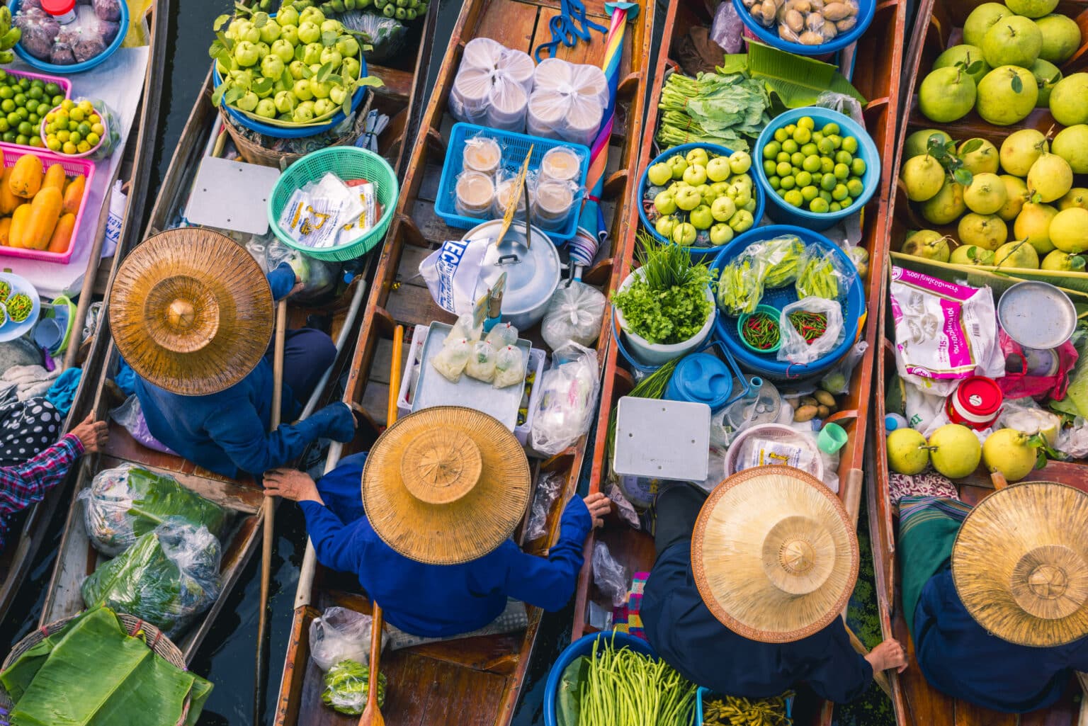 Beginning in Bangkok, an electric city built on the unexpected, you’ll find streets of hawking traders as they celebrate their craftsmanship, from the latest woven rugs to artwork frosted with gold adornments. Aromas of garlic, ginger and chilli fired up in a wok drift among the city, interspersed with the rumbles of tuk-tuks and distant chimes of temple bells.