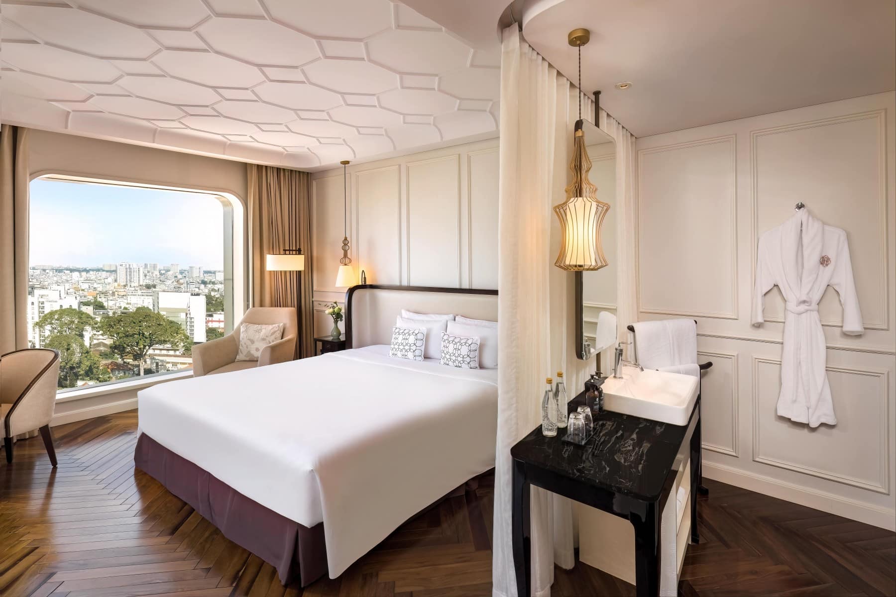 Putting a contemporary, sleek spin on its French colonial heritage, Hotel Des Arts is a glamorous bolthole with 168 rooms and suites and the highest rooftop pool in the city. When not taking in the skyline views from the pool, wandering through the hotel’s art collection, or enjoying a mixologist crafted cocktail on the rooftop bar, the hotel is just a ten minute walk from many of the highlights of Ho Chi Minh City, including the Saigon Central Post Office, the Reunification Palace and the War Remnants Museum.The super-cool design ethos of the hotel extends to the rooms and suites which are light and airy, with a balance of contemporary chic and French elegance. Rosewood parquet flooring, crisp white Egyptian linens and custom-designed furnishings create a welcoming and serene retreat, while large windows mean you’re still in touch with the bright lights and buzz of the city far below. If the restful decor and cloud-like beds don’t induce complete relaxation, head to the spa for a treatment to nourish body and mind.