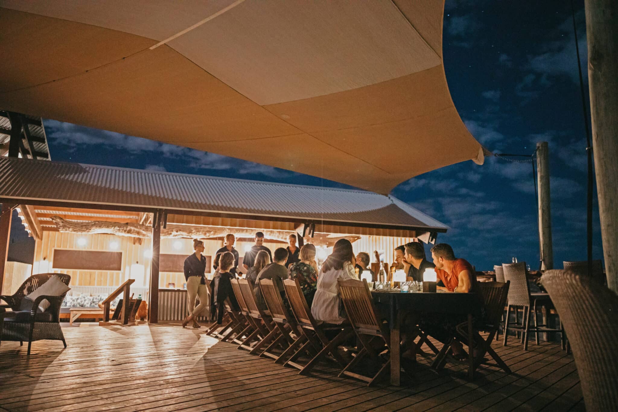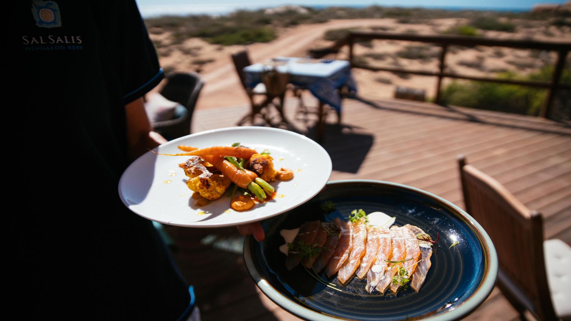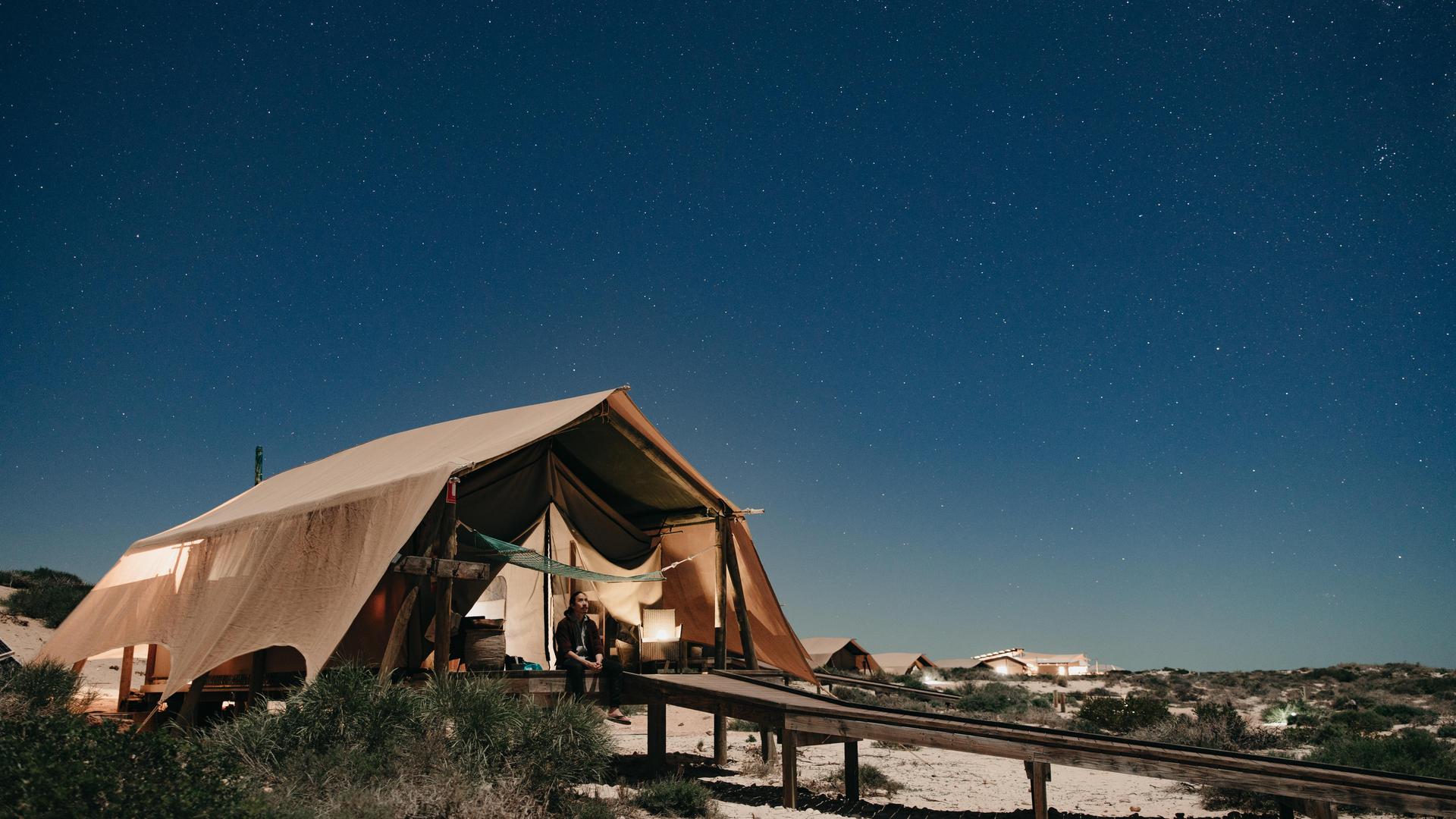 The focus of your stay at Sal Salis is the wilderness around you and its marine and land inhabitants. The camp has been designed to operate in tune with the fragile environment and as such we abide by strict principles of minimal impact and sustainability. All of the power is solar generated, each en suite bathroom has a natureloo, water usage is very carefully managed and no waste material escapes into the surrounding ecosystem. The camp has 16 wilderness tents built amongst the sand dunes. They are furnished with comfortable beds, made up with quality bed linen. Guest robes, native herb soaps and organic shampoos are provided. The tents are spacious, simple and comfortable – they are not intended to be 5 star hotel rooms in the bush so do not offer TVs, telephones, minibars or other typical hotel room appliances.