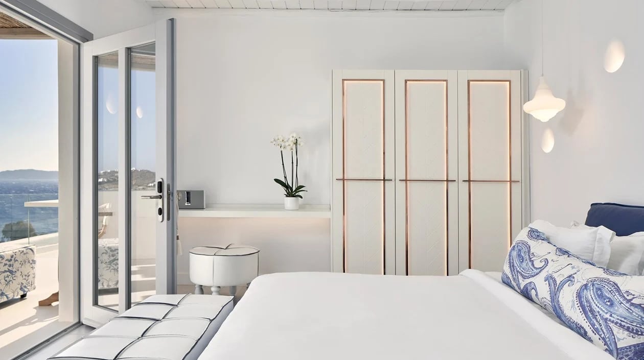 Located above the sun-kissed beach of Agios Ioannis in Mykonos, Katikies Mykonos offers uncompromising luxury in an elegant 5-star setting. As a member of the Leading Hotels of the World, it captures the essence of chic seaside living, just a breath away from the shimmering sea. Located in the island’s most romantic corner, it offers a relaxed atmosphere with fine dining, privileged Delos views, and breathtaking white-sand beaches, all just 4 km from Mykonos town centre.The hotel boasts 35 brilliantly appointed luxury suites, each offering a contemporary take on charming authenticity down to the smallest detail. With a policy of no children under 13 years old, it ensures a serene and sophisticated ambience for the most discerning of guests.Katikies Mykonos pampers guests with world-class amenities, including a crystalline pool, a spa and wellness centre, and an on-site fitness studio. Two gourmet restaurants serve exceptional Mediterranean flavours against a backdrop of Cycladic splendour, while the poolside bar offers refreshing cocktails with panoramic sea views. The Katikies Club offers luxury private transfers, ensuring guests enjoy every moment of their stay in this luxurious paradise.