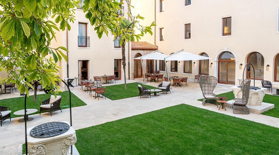 Located at the entrance to the Arsenale district where the famous Art Biennale is held, Ca’ di Dio sympathetically blends the history of its 1272 origins with a more contemporary approach in its design that adds an arty edge. Couple that with a secluded inner courtyard, a hidden garden and two traditional raised wooden roof terraces, and you have an luxuriously inviting hotel that’s both a sanctuary and a base for exploring.From vividly colourful Murano glass lamps to locally-made fabrics and marble bathrooms, the 66 rooms and suites are elegantly welcoming, with views over the mimosa and magnolia trees of the peaceful courtyards, the lagoon or the rooftops of the city. The art, history, food and architecture of Venice are on your doorstep, so after a day of sightseeing, the regenerative and revitalising treatments of the Pura spa are likely to be much needed. The two restaurants and bar are equally well-curated, whether sipping a mixologist-crafted cocktail, dining in the courtyard or savouring Venetian cuisine with a view of the lagoon.