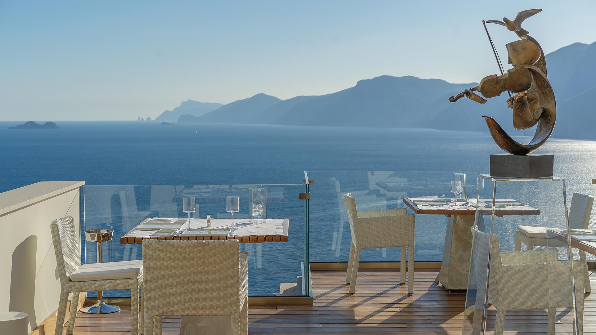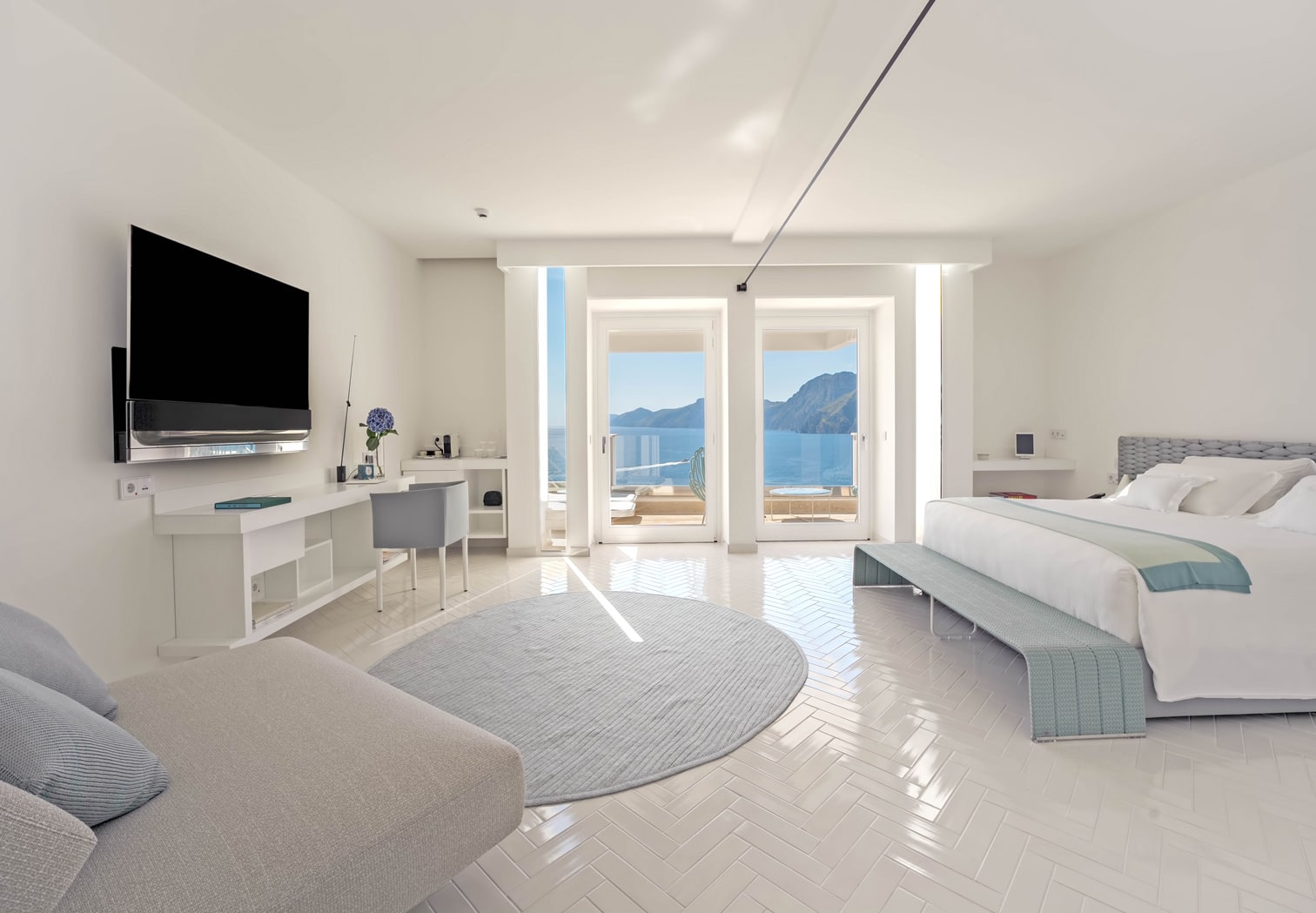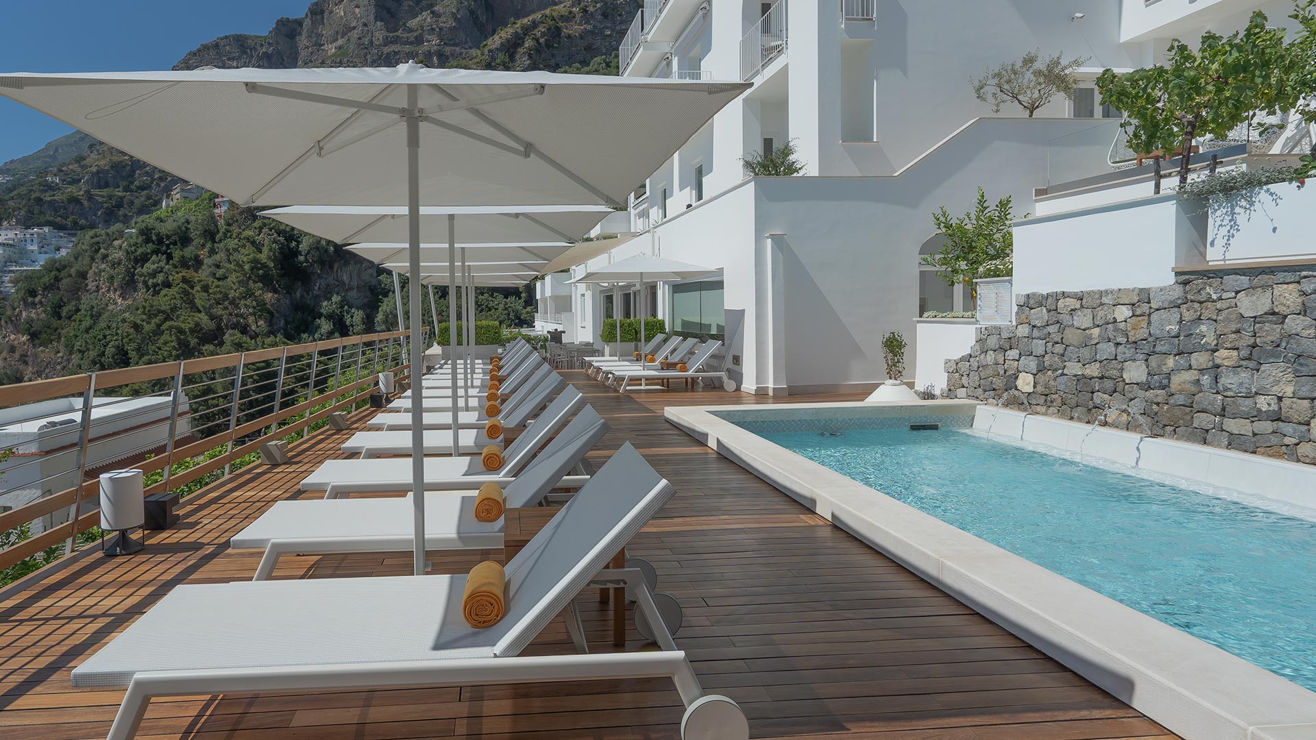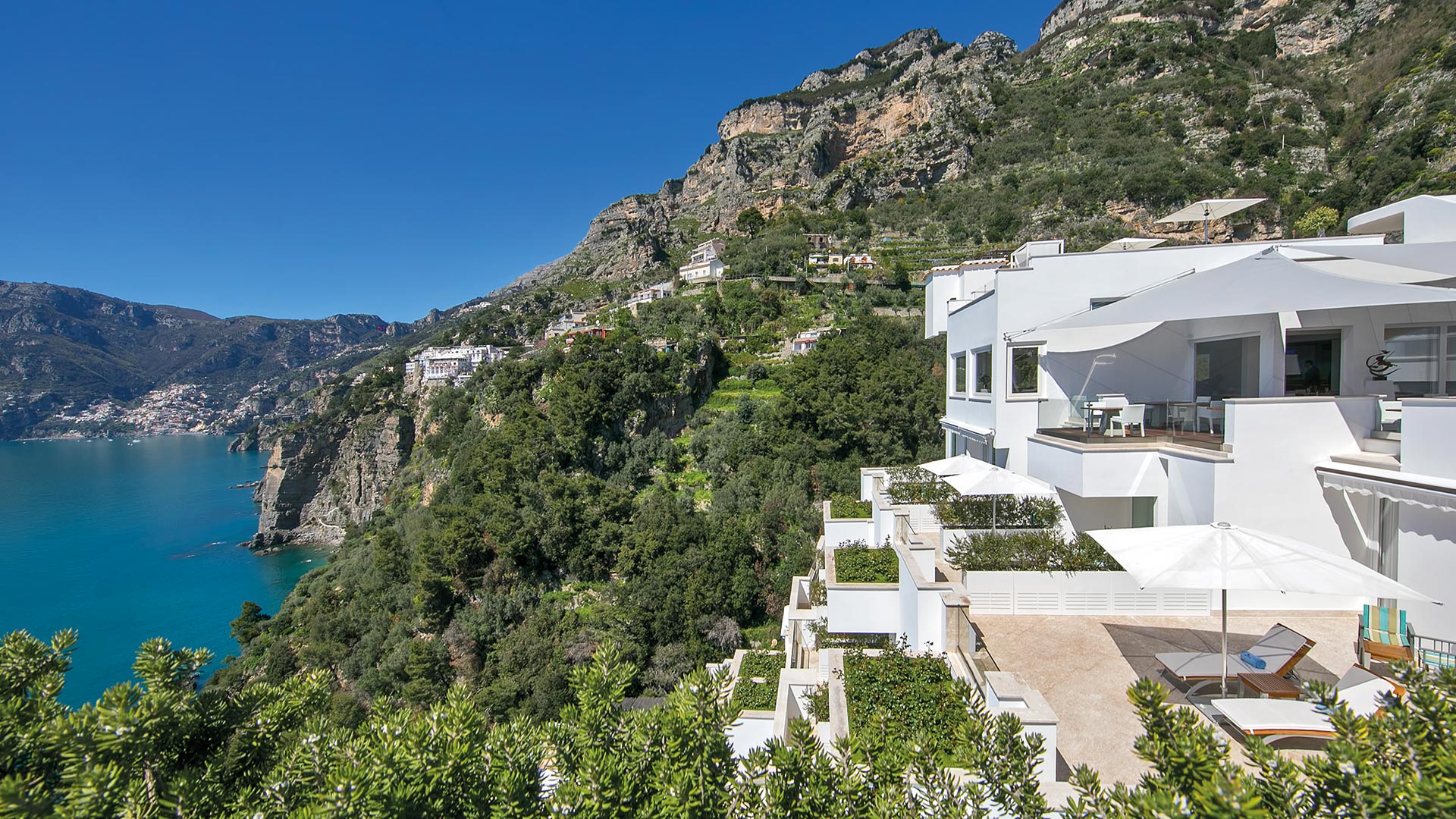 Nestled on the cliffside overlooking Positano and offering panoramic views of the coastline and Capri’s Faraglioni rock formations, Casa Angelina’s dazzling white interiors, Murano glass sculptures and minimalist lines are the epitome of modern luxury, creating a sophisticated yet laidback retreat. The communal spaces and many rooms face the sea, creating a dramatic juxtaposition of the gleaming white of the hotel and the azure blue sea beyond. The hotel’s facilities are superb, boasting two pools, including a heated hydrotherapy pool, a spa and well-equipped gym. Culinary delights await at Piano nel Cielo, the rooftop restaurant offering a gastronomic journey through Campania’s flavours, complemented by an extensive wine selection of over 3,000 bottles and exceptional views of Capri and the Amalfi coast.The 42 rooms exude comfort and luxury with thoughtful amenities such as Etro linens, Jo Malone toiletries, and espresso machines. Suites on the top floor feature expansive terraces and sunken baths, perfect for indulgent relaxation but for added seclusion, the beachfront suites offer private breakfast areas and dedicated butler service. From the rooms to the pool, Casa Angelina’s serene atmosphere and impeccable service make it a sought-after haven for an unforgettable Amalfi Coast experience.