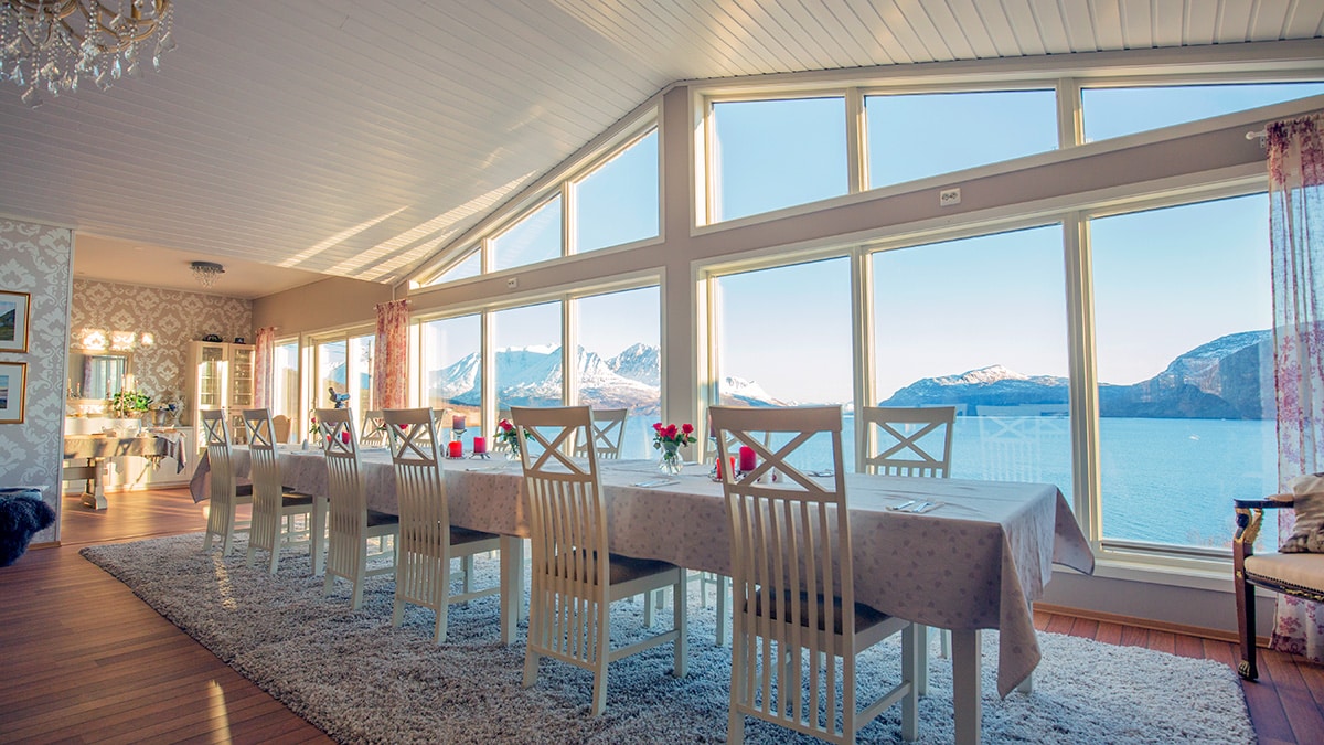 The Arctic Panorama Lodge offers a unique opportunity to connect with nature and experience the breathtaking beauty of the Arctic north. Situated in a tranquil location, it provides a serene escape from the hustle and bustle of city life. Here you will discover an unforgettable experience in the heart of the Arctic, whether in autumn and winter when you can view the Northern Lights and partake in thrilling snowmobile rides, or during the summer when you can enjoy boat tours under the midnight sun.The Lodge features 12 individually decorated, cosy rooms with en-suite bathrooms, with some featuring sea views. Outside, guests can relax in the hotel’s large Jacuzzi, or make use of the kick-sleds and bicycles, while the hotel’s spa facilities offer a perfect retreat for relaxation and rejuvenation.Meals at the Arctic Panorama Lodge are served on a communal long table, featuring thoughtfully prepared dishes, using fresh, locally-sourced ingredients, while the bar offers a wide selection of wines, beers, and spirits. The impressive breakfast buffet, set lunch menu, and delightful evening dishes all ensure a satisfying culinary experience.Whether you seek a peaceful retreat or an action-packed getaway, the Arctic Panorama Lodge caters to every need, ensuring an extraordinary and memorable stay.