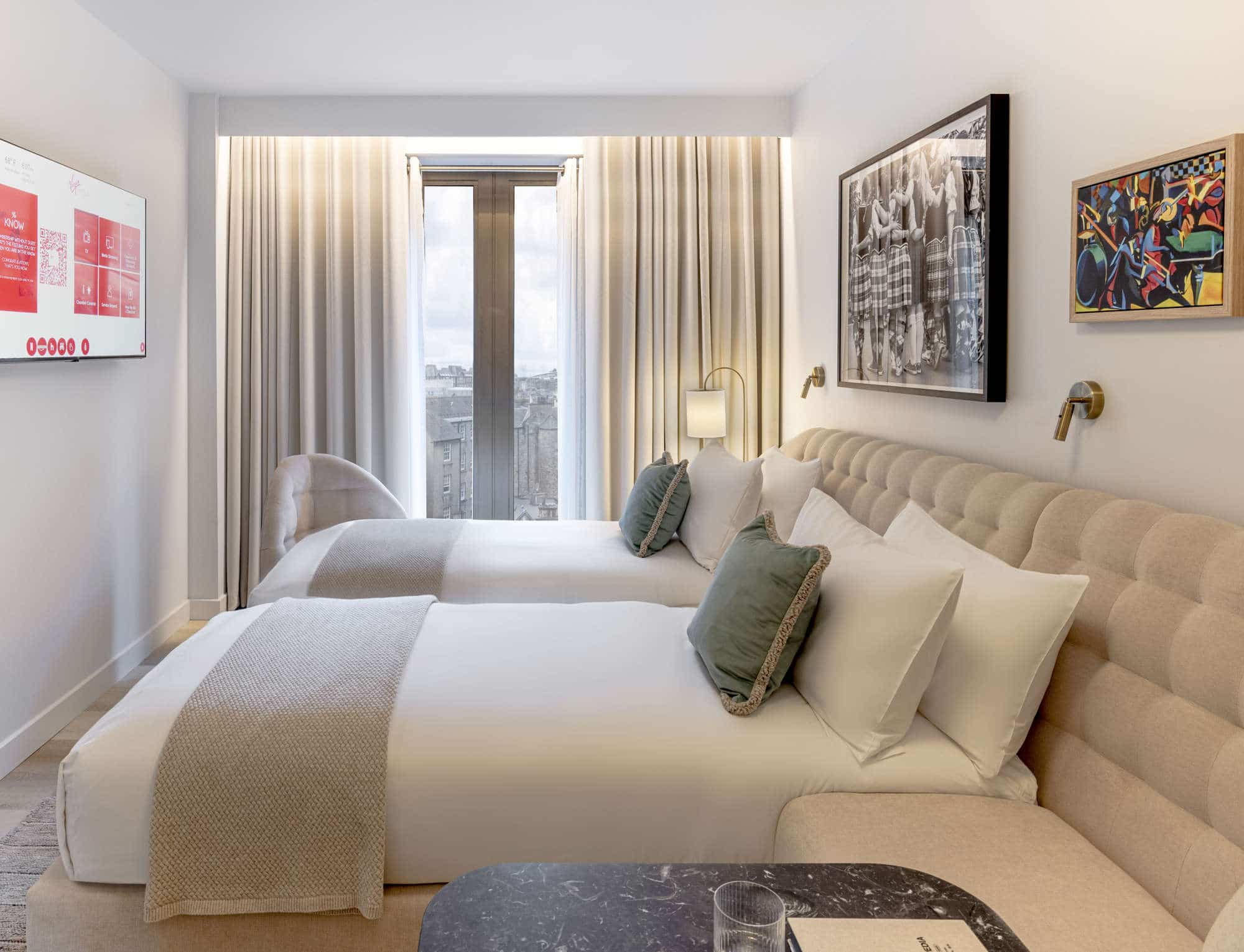 Tucked away on Victoria Street in Edinburgh’s Old Town, Virgin Hotels Edinburgh enjoys a prime location for exploring the ancient sites of the city, including Edinburgh Castle and St Giles Cathedral. Set across five unique and interconnected buildings, the hotel’s interiors are creatively exuberant, with playful touches scattered throughout. Think light-filled spaces, curvaceous furniture, and more than a hint of Virgin’s trademark lively approach to travel. Entertainment is certainly on the cards in the restaurant and bar, with a changing programme of events including Chef’s Table at Commons Club, Jazz & Swing or Saturday Funk and Soul classics at Eve Bar and weekend brunch with handpicked entertainment. From the hotel’s flagship restaurant, The Commons Club, which serves up a modern take on heritage Scottish cuisine to more informal fare and world-famous DJs and local stars at Eve Bar, dining is a pleasure, despite the many other tempting options on your doorstep.The 222 ‘chambers’ and suites are a calming palette of soft pinks, natural materials, and neutral tones in thoughtfully designed spaces that offer a sense of privacy and tranquillity. Bright red SMEG mini-fridges, app-operated amenities and patented custom-designed hybrid beds create an indulgent space that may tempt you back early from your exploration of the city.