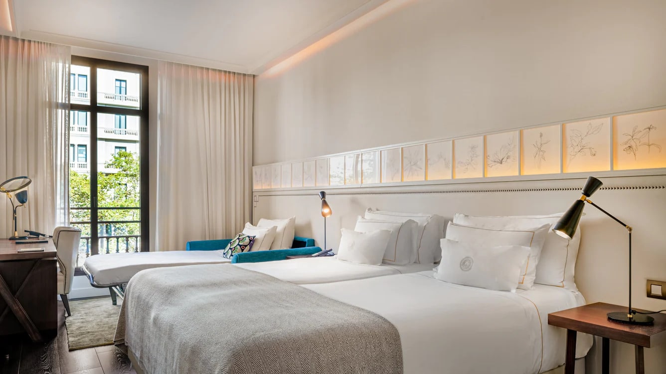 Located in the heart of Barcelona, Cotton House Hotel seamlessly blends trendy modernity with the rich history of its iconic XIX century building, the former headquarters of the Association of Cotton House Manufacturers. Steeped in heritage, its elegant façade welcomes guests into a world of luxury and comfort, boasting 83 rooms, including five opulent suites, each exuding its own unique charm.The hotel’s interior is a real treat for lovers of fine architecture, with stunning marble and spiral staircases, an elegant library and lounges, and a glass conservatory overlooking a spacious terrace. The elegant rooms and suites here at Cotton House Hotel cater to every need, from the comfort of the Panama Room to the luxury of the Suite Vichy with its private terrace, you’re sure to find the perfect space to suit you.Dining at the hotel’s Batuar restaurant is an experience in itself, offering Mediterranean cuisine in a sophisticated yet familiar ambience. Whether enjoying tapas on the extensive terrace or indulging in the hybrid gastronomic breakfast buffet, guests are immersed in the true essence of Barcelona’s lifestyle. Afterward, why not unwind at the cocktail bar, or take advantage of the fitness centre and outdoor pool? – Cotton House is not just a hotel; it’s an invitation to immerse oneself in the vibrant spirit of Barcelona’s past and present.