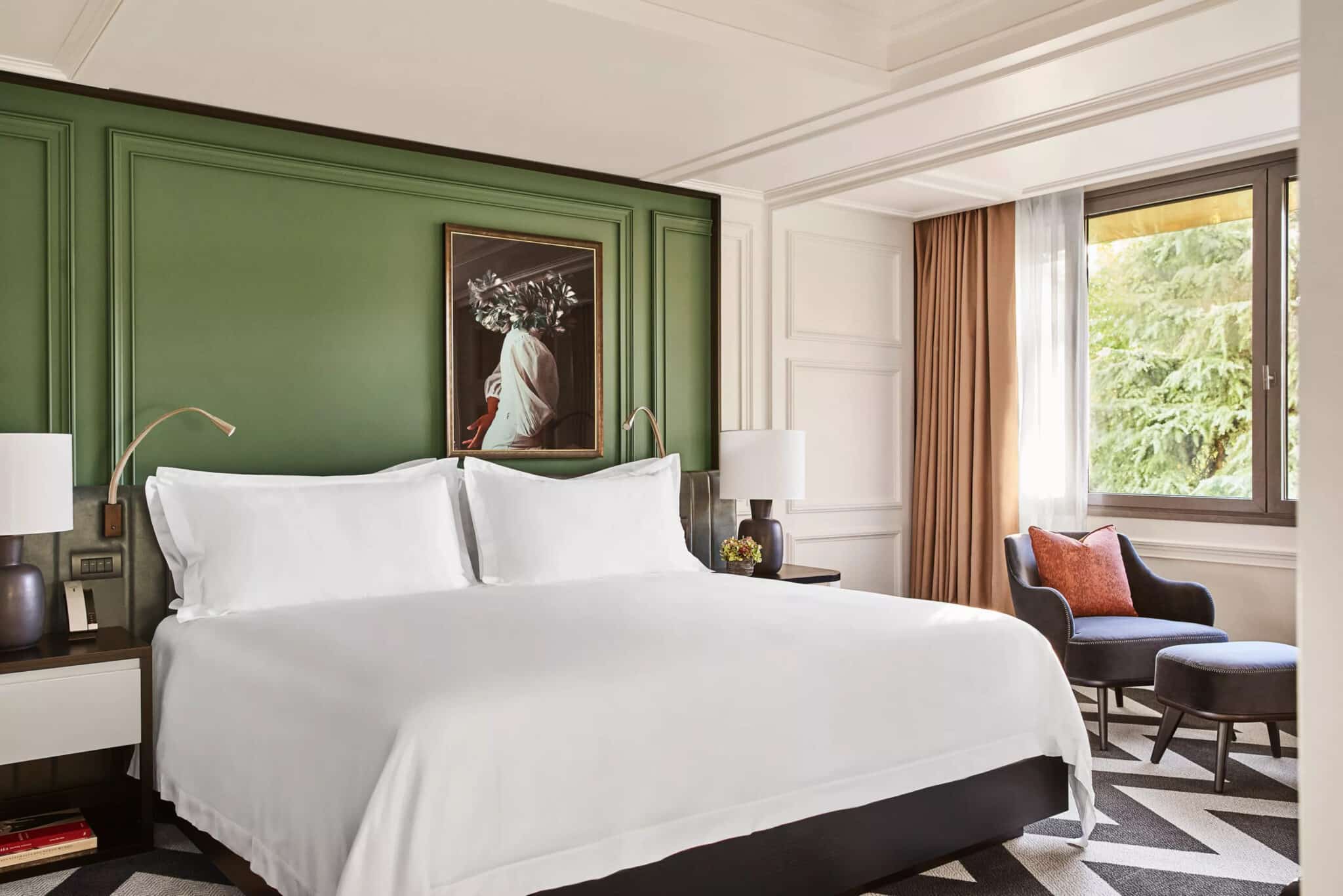 • Accommodations at Rosewood Villa Magna include deluxe and premier rooms, impressive suites, and – for a unique experience – 2 rooftop houses that offer exceptional views of Madrid