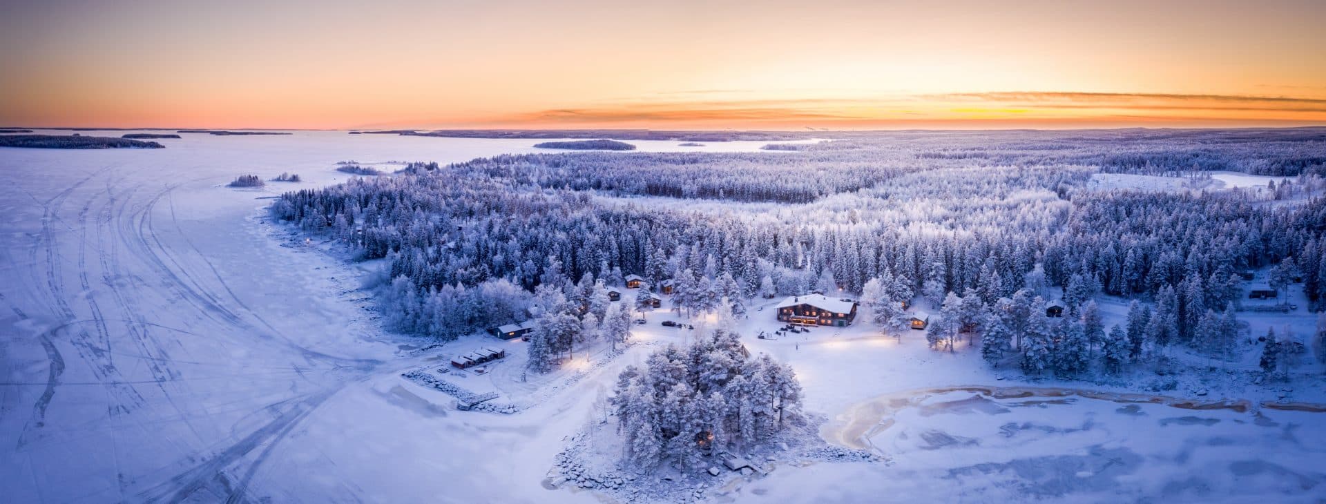 The resort boasts a main lodge, 15 accommodation cabins, large Tepee tents as well as several relaxation and sauna cabins. In the summer there is a small cosy sand beach where you can enjoy the sun and small boat harbour from where you can start exploring the archipelago. In winter this is the starting point for a wide range of winter activities on the frozen sea and nearby islands including our signature adventure the Pack Ice Snowmobile Safari. The main building is a log cabin that includes restaurant, lounges and relax area. Surrounding the log cabin are 15 cabins facing towards the sea and the Luleå archipelago. Each cabin has been recently renovated and includes 1 one bathroom, two bedrooms with 2 single beds in each room, a lounge room and a front facing covered porch. Winter clothing is provided to all guests and Brändön Lodge is also the departure point for a range of fantastic activities.