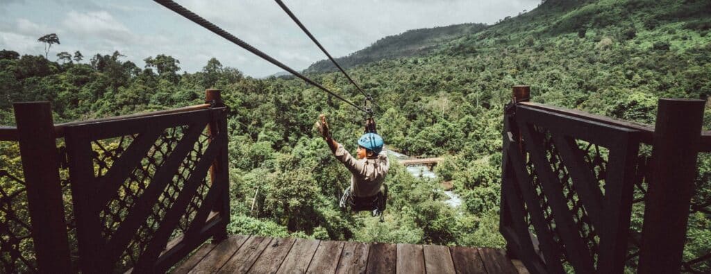 Arrive at the luxe sanctuary of Shinta Mani Wild, deep in the Cambodian jungle, by ziplining across its gushing river. This tented retreat is the ultimate escape for activity seekers, where your ‘adventure butler’ will recommend everything from jungle hikes to biking, foraging, motorcycle patrols with the rangers and tubing down the river. But it’s the 400 metre zipline that offers the chance to get high in the air and enjoy sweeping aerial views of the lush canopies and Raging Big Sister Falls, as you speed up to 50kmph. Finish your flight at the aptly named Landing Zone Bar, where you’ll be handed a gin and tonic, and relax after your day’s adventures in one of the best roll topped baths we’ve seen – out on your deck and immersed in the rainforest.