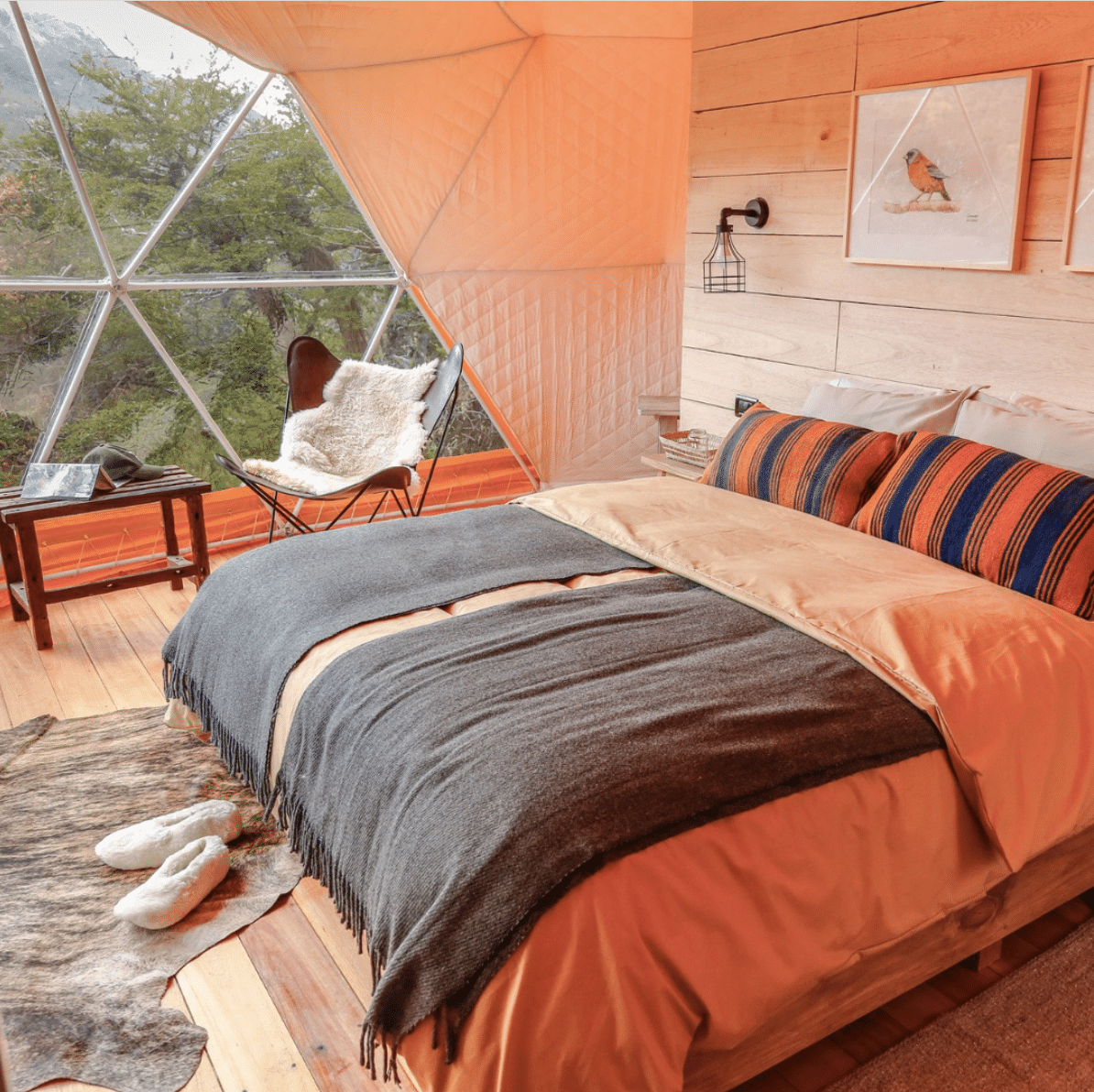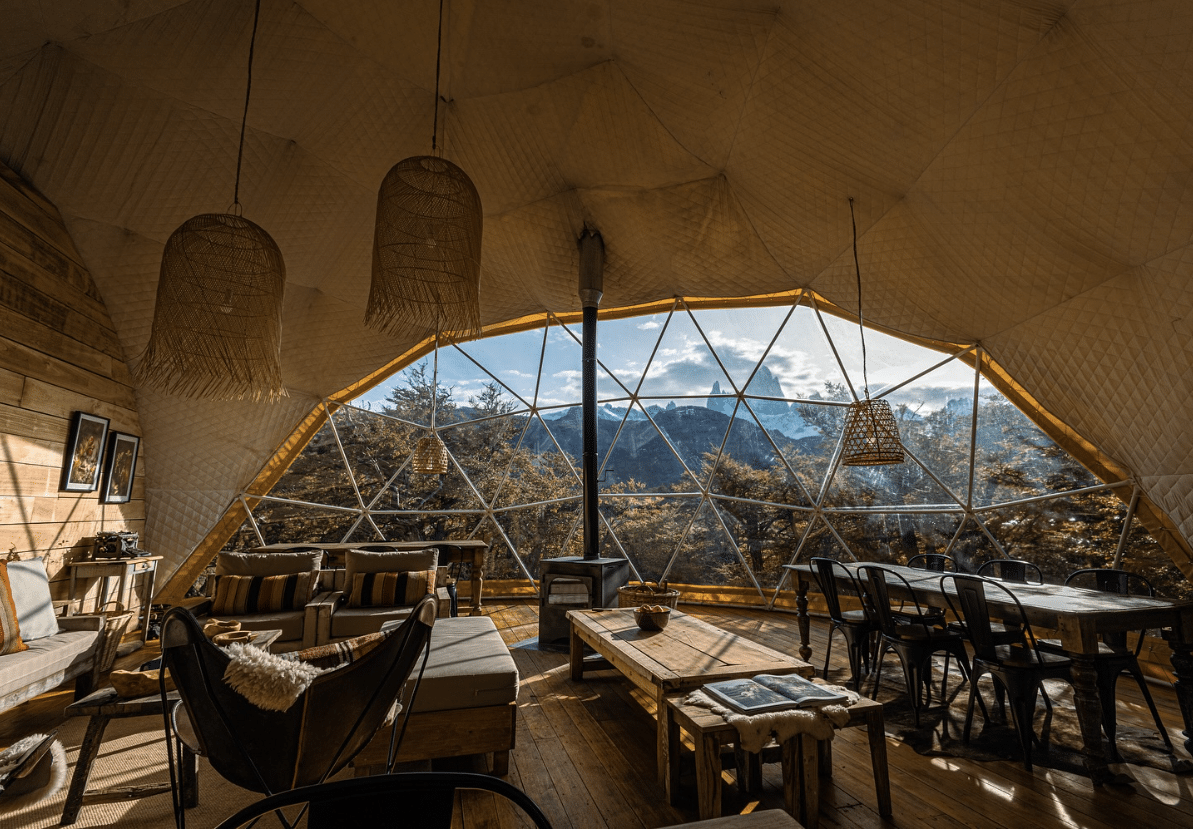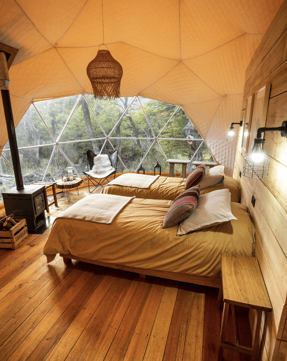 Chalten Camp is a unique and exclusive accommodation choice, located in a quiet corner of El Chalten and the only property within eyesight. Offering luxury domes, nestled in native forest with panoramic windows looking out to the majestic mountain range, it’s really a one of a kind experience. The domes are 27sqm and have a bedroom and private bathroom, as well as an indulgent wood burning stove for those cold evenings!