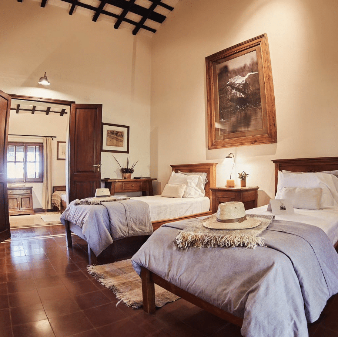 Rincon del Socorro is a renovated farm located within an enormous natural park in the north east of Argentina, in the Iberá Wetlands. The Iberá Wetlands are seasonally flooded grasslands, which are also home to palm groves, savanna, woodlands and forests. It was created by Douglas Tompkins, a philanthropist and conservationist and is now handled by his foundation, The Conservation Land Trust. The team have now resorted and expanded the old buildings of the farm and gone through an intense rehabilitation and re-wilding programme, where you can now spot giant anteaters, pampas deer, peccaries and hundreds of species of birds.The lodge itself has large a swimming pool for hot days as well as a fireplace for cooler evenings. It has just 11 rooms and includes full board and activities during your stay. Dishes are prepared using vegetables grown in their organic garden, and of course, you’ll be able to savour the mouth-watering Argentinian bbq or ‘asado’.