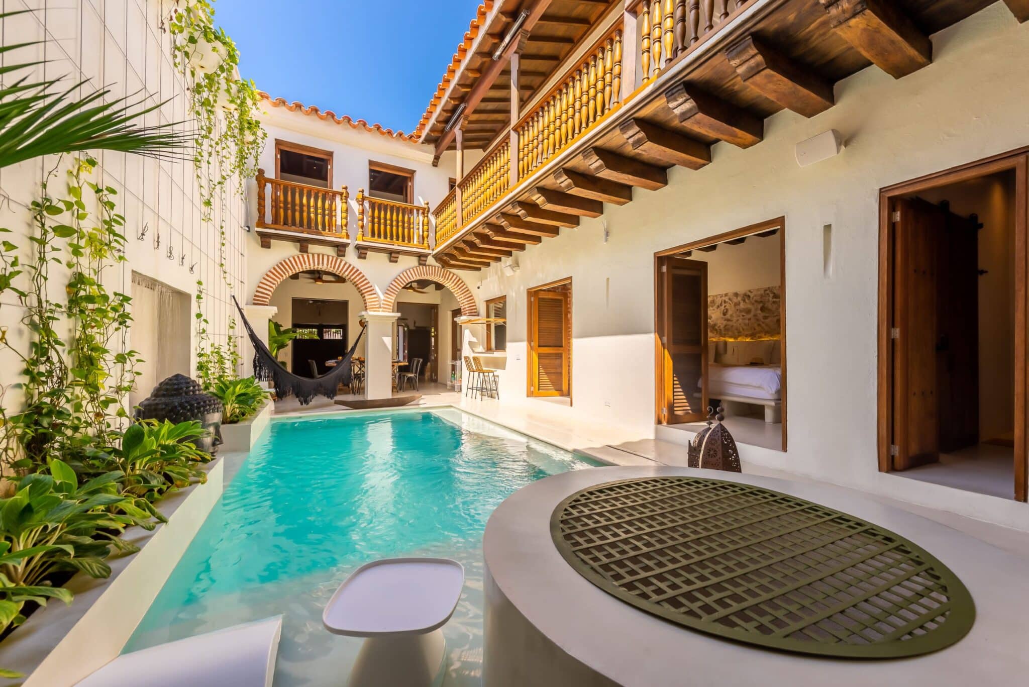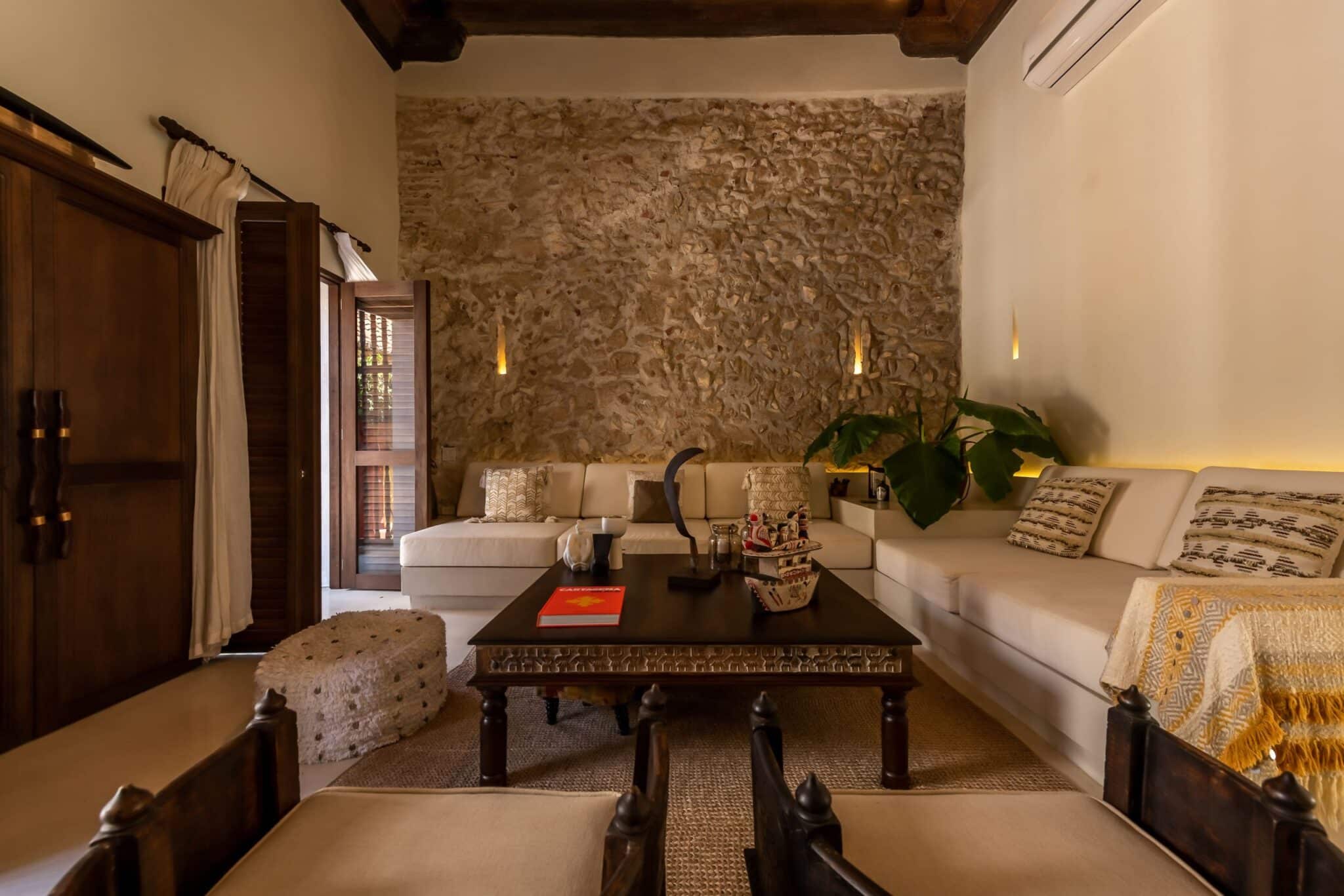A renovated 17th-century mansion in the walled city of Cartagena de Indias, declared a UNESCO World Heritage Site for its historical and cultural significance.