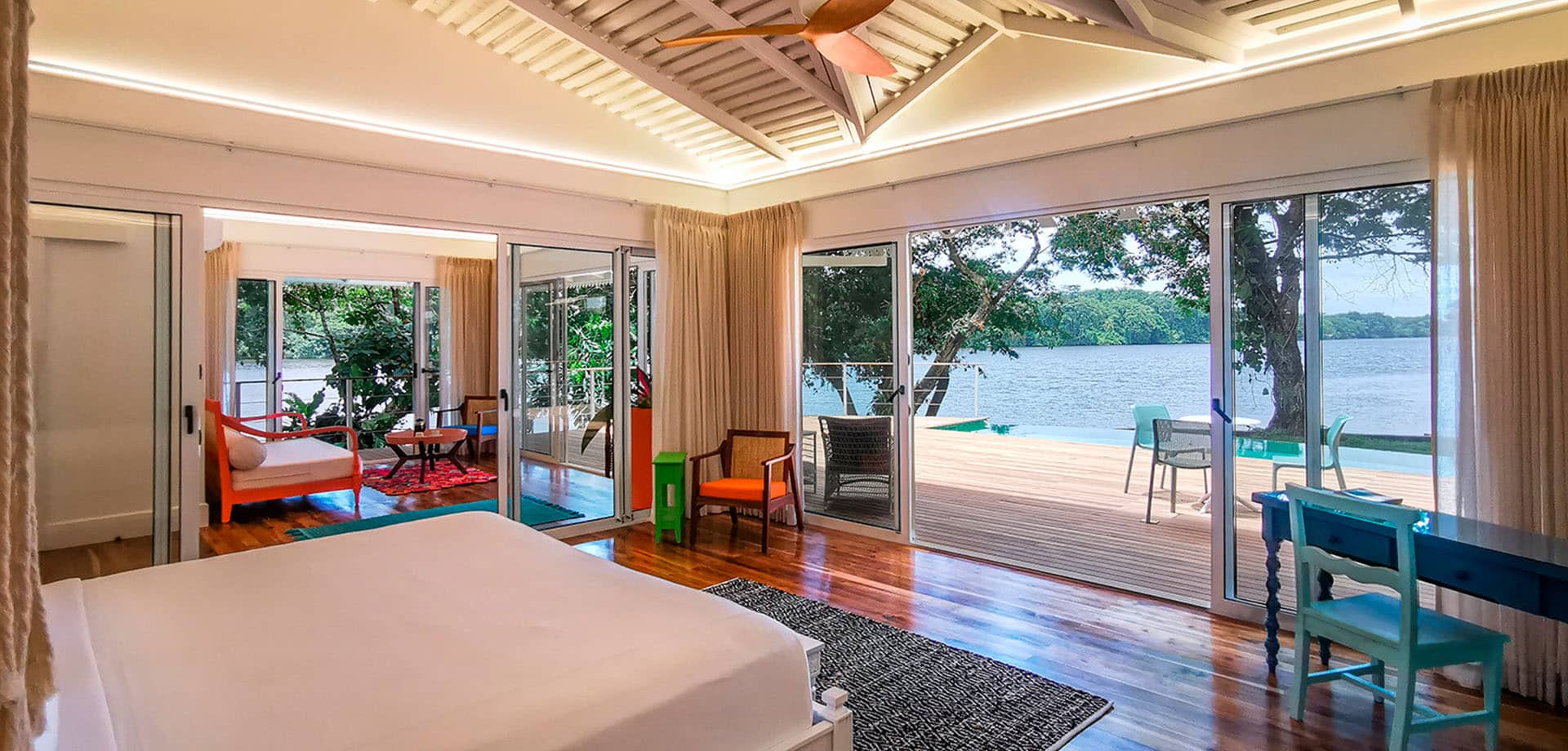 A jungle paradise made up of twenty stylish suites built from sustainable wood with traditional thatched roofs and spacious decks shaded by the jungle canopy.