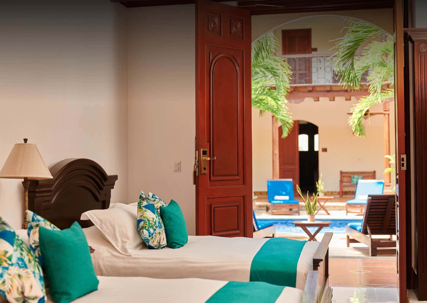 The boutique hotel sits across Granada’s main square opposite the cathedral. The building has housed many a local aristocratic family in the city, with the latest deciding to turn it into a four-star hotel after acquiring neighboring properties. Rooms are spacious and have an elegant décor, with a sleek modernisation of the local colonial style, and are furnished with dark-wood beds and fixtures and biodegradable products and amenities.Accommodation on the second floor has vaulted ceilings and some rooms have wooden balconies equipped with rocking chairs looking out over the city’s main park. The central courtyard features an outdoor pool, in addition to an onsite bar, breakfast area and gym. Its central location means that there are plenty of dining options nearby including the popular La Calzada street, adjacent to the cathedral, where you will find most of the city’s best restaurants.